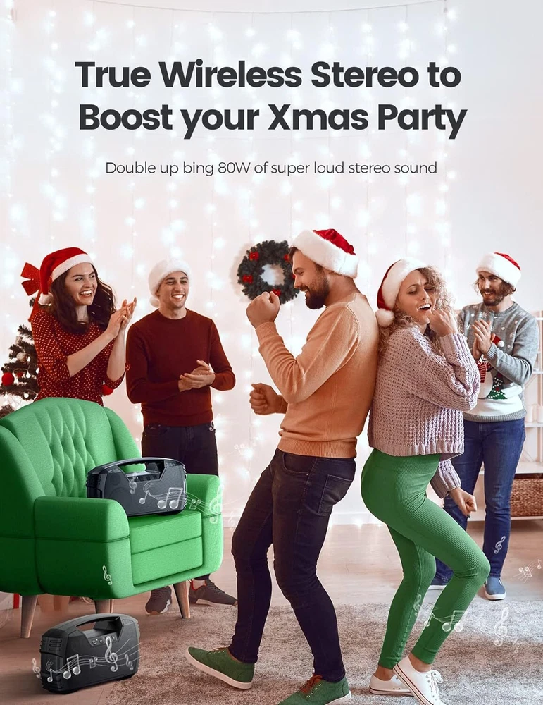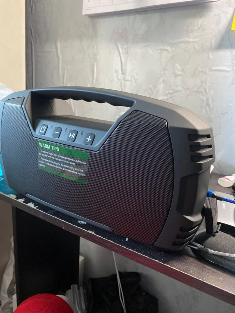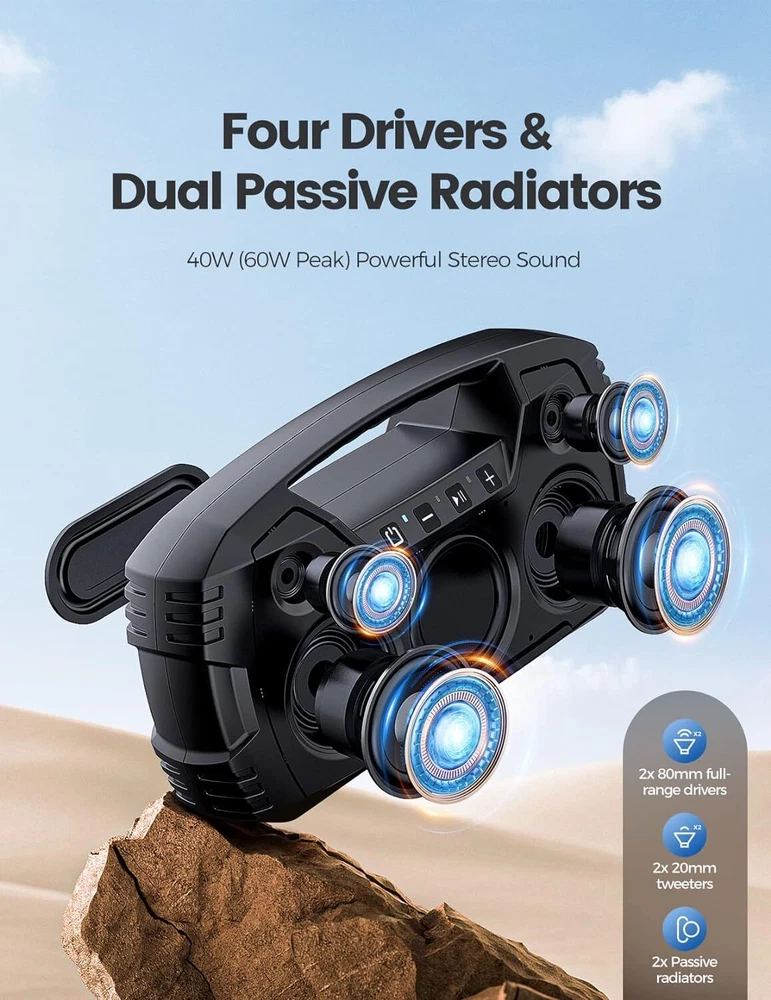 IPX7 Waterproof Bluetooth Speaker, 40W(60 Peak) Portable Wireless Speaker with Subwoofer, 32H Playtime, Stereo Loud Sound, Deep Bass, Bluetooth 5.0 Outdoor Speakers Powerful Stereo Speaker - Featuring 4 dedicated drivers with 2 15W full-range drivers and 2 5W tweeters, along with 2 passive radiators on the front and rear, this loud Bluetooth speaker delivers 40W surround sound (peak 60W) and pumps out well-balanced midrange, crisp treble, and punchy bass with virtually no distortion, letting you enjoy the music to the utmost. Pair 2 speakers together for 80 watt stereo sound Epic 32-Hour Playtime- Houl Zallee outdoor Bluetooth speaker delivers up to 32 hours of playtime on a single charge (Actual playtime may vary by the music content and sound volume). Enjoy loud sound with powerful bass and clear vocals at home, in the garage, or outside on the road. Its built-in large-capacity rechargeable batteries can charge phones or other devices, making it a great camping gift IPX7 Waterproof Speakers - The Houl Zallee outdoor speaker is rugged enough for outdoor adventures and rigorously tested to meet IPX7 waterproof standards. It's fully water proof and can even float on water and survive being fully submerged in 3.3 feet of water for up to 30 minutes. So there is no need to worry when using it by the sea, the pool, on a boat, or in a shower room.The idea for outdoor adventures Bluetooth 5.0 Wireless Speaker: Built with the newest Bluetooth 5.0 chip with EDR technology, this wireless Bluetooth speaker ensures a faster and more stable connection than Bluetooth 4.0. Houl Zallee bass Bluetooth speaker livening up your tailgate party, birthday party, pool/beach party, backyard barbecues, or camping/hiking trips made easier Durable Portable Speaker with Handle: Crafted from ultra-durable ABS and metal, this portable outdoor speaker is very durable and impact-resistant. With a built-in handle, it's so convenient to carry the speaker anywhere for outdoor sports or other activities, bringing big fun with us. This big speaker is a great choice as a gift for men, women, teenagers, and seniors everyone who loves music