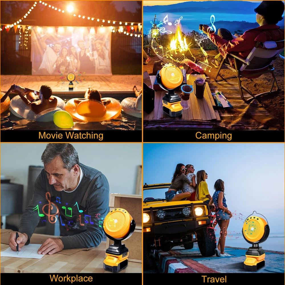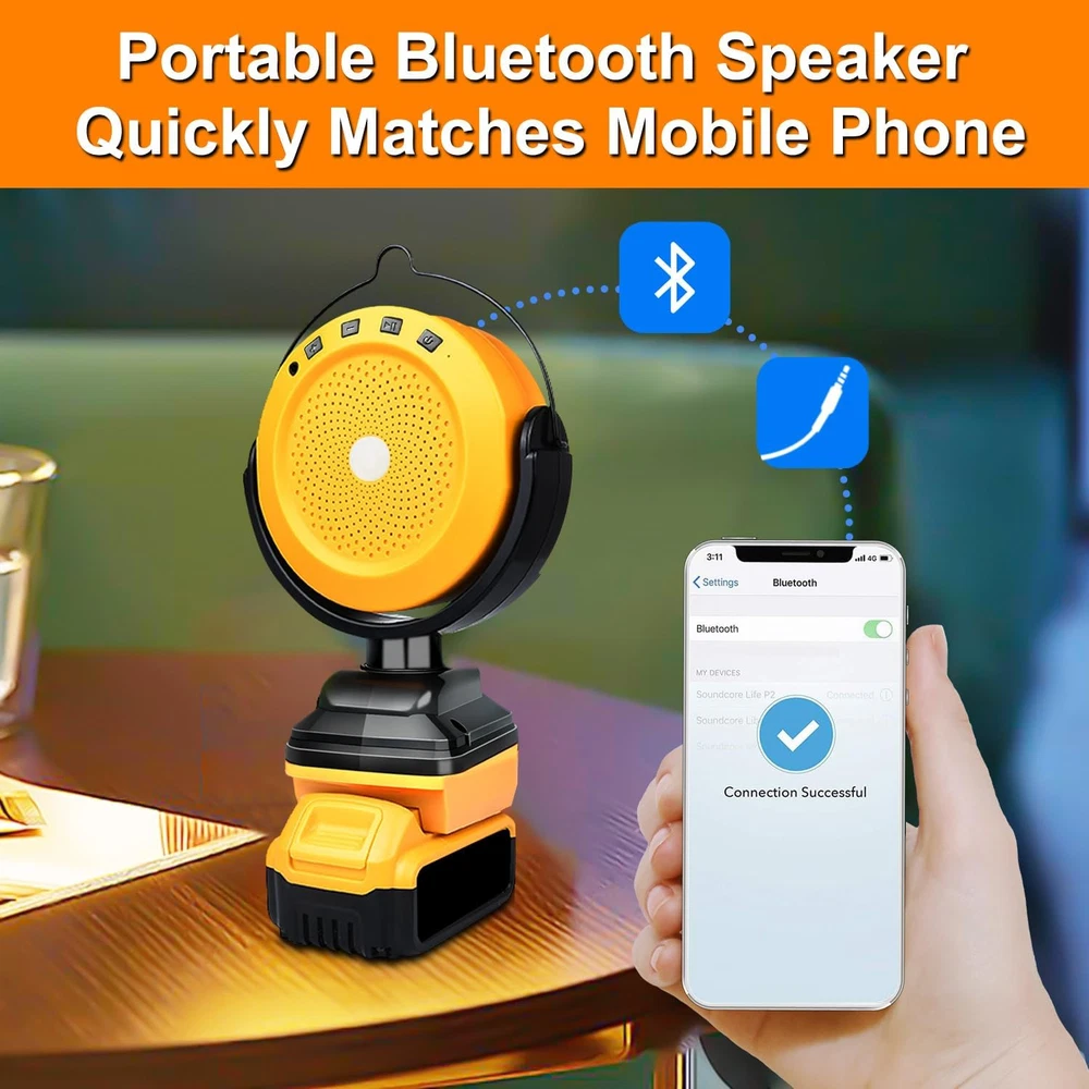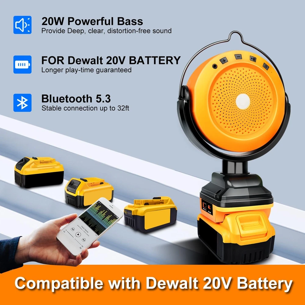 Store New Arrivals Add to Favorite View Feedback Contact Bluetooth Speaker for Dewalt 18V 20V 60V Battery,Portable Bluetooth Speaker with Type C & USB Charging for Jobsite, Camping and Festival Party (No Battery) (DW20VBS) Description Item model number DW20VBS Number of Items 1 Power Source Battery Powered Country of Origin China Warranty Type Limited Processor Count 1 Includes MP3 player? Yes Controller Type Button, Mobile App Unit Count 1.0 Count Speaker Size 32 Feet Wireless Communication Technology Bluetooth Brand Edtran Material Plastic Vehicle Service Type Car Age Range (Description) Adult Number of Batteries 1 Lithium Ion batteries required. Specific Uses For Product jobsite, camping, festival party Included Components Portable Bluetooth Speaker, Type C Charging Cable, USB Charging Cable Model Name DW20VBS Subwoofer Connectivity Technology Wireless Recommended Uses For Product Laptop Water Resistance Level Not Water Resistant Connectivity Protocol Bluetooth Item Weight 1.32 pounds Connectivity Technology Bluetooth Model DW20VBS Special Feature Portable, Type C Port, USB Port Is Waterproof No Compatible Devices Tablet, Smartphone Package Dimensions 10.16 x 6.85 x 3.66 inches Maximum Range 32 Feet Batteries 1 Lithium Ion batteries required. Audio Output Mode Stereo Manufacturer DW20VBS Speaker Type 环绕声 【High Quality 】: Edtran Bluetooth speakers typically deliver clear, balanced sound, including powerful bass and clear, deep, rich, distortion-free audio, allowing you to enjoy the ultimate stereo experience. 【Unique Design】: Portable Bluetooth speaker with a concealed handle, 270-degree rotating Bluetooth speaker with USB and Type C for charging capability, compatible with various devices such as smartphones and tablets. 【Lifespan Long】:Bluetooth speaker perfectly compatible with Dewalt 18V batteries, utilizing an external battery pack, providing a longer lifespan compared to ordinary built-in batteries. It features a built-in 20W speaker and can be remotely controlled through a mobile app for adjusting music, volume, and other settings 【Low Voltage Protection】: The Bluetooth speaker is equipped with low voltage protection to prevent overload damage. The Bluetooth speaker will automatically turn off after 10 minutes of inactivity when not connected to any Bluetooth device. Bluetooth speakers typically support various connection options, including Bluetooth and AUX input 【Wide Application】: Bluetooth speakers can be used in various situations and places, including home movie viewing, outdoor activities, camping, office or workplace, travel, parties and events, allowing you to enjoy the pleasure of music and sound in different settings. Product Description Bluetooth speakers typically deliver clear, balanced sound, including powerful bass and clear, deep, rich, distortion-free audio, allowing you to enjoy the ultimate stereo experience.can be used in various situations and places, including home movie viewing, outdoor activities, camping, office or workplace, travel, parties and events, allowing you to enjoy the pleasure of music and sound in different settings. Bluetooth speaker features Clear Sound Connect Easily Compact Size Portability TROUBLESHOOTING Bluetooth not connecting 1. Another device may already be connected. Disconnect the otherdevice first and then try connecting the desired 2. Device Bluetooth is off. Turn on device Bluetooth. 3,Bluetooth speaker is in AUX mode. Remove the AUX cable fromthe port on the speaker and device.check speaker is on (Bluetooth model) 3.5mm (LINEIN)not connecting 4.check audio cable have connected ,check speaker is on (LINEIN)mode Easy Connectivity: Edtran portable Bluetooth speaker supports two types of connections. Bluetooth 5.3 ensures a fast and stable pairing with your devices, ensuring a strong connection up to 32 feet. It also supports USB and Type C audio sources while featuring charging capability. Package Contents: 1* Bluetooth Speaker 1* AUX 3.5mm Cable ABOUT US We offer the best prices around on high quality products. Our E-store includes media such as books, movies, music and games while offering electronics, toys, sporting apparel, clothing, tools, general home, garden items and more. SHIPPING We are always working hard to ensure your package arrives as soon as possible. Please understand that some factors like weather, high postal traffic, and the performance of shipping companies are outside of our control. We offer free shipping to the lower 48 states and ship within 2 business days of payment, usually sooner. We do not accept P.O. Boxes. Please provide a physical address. RETURNS We offer a 30-Day Return Policy on items which you are not completely satisfied with. You have the option for a full-refund or an exchange of the item. No returns are available on items shipped outside of the USA. PAYMENT We accept PayPal. CONTACT US This page content is yet to come Please ad us to your favorite seller and visit again later Thank You CUSTOMER SATISFACTION We try our very best to make sure every customer is completely satisfied. If there's a problem, message us! We're happy to help.