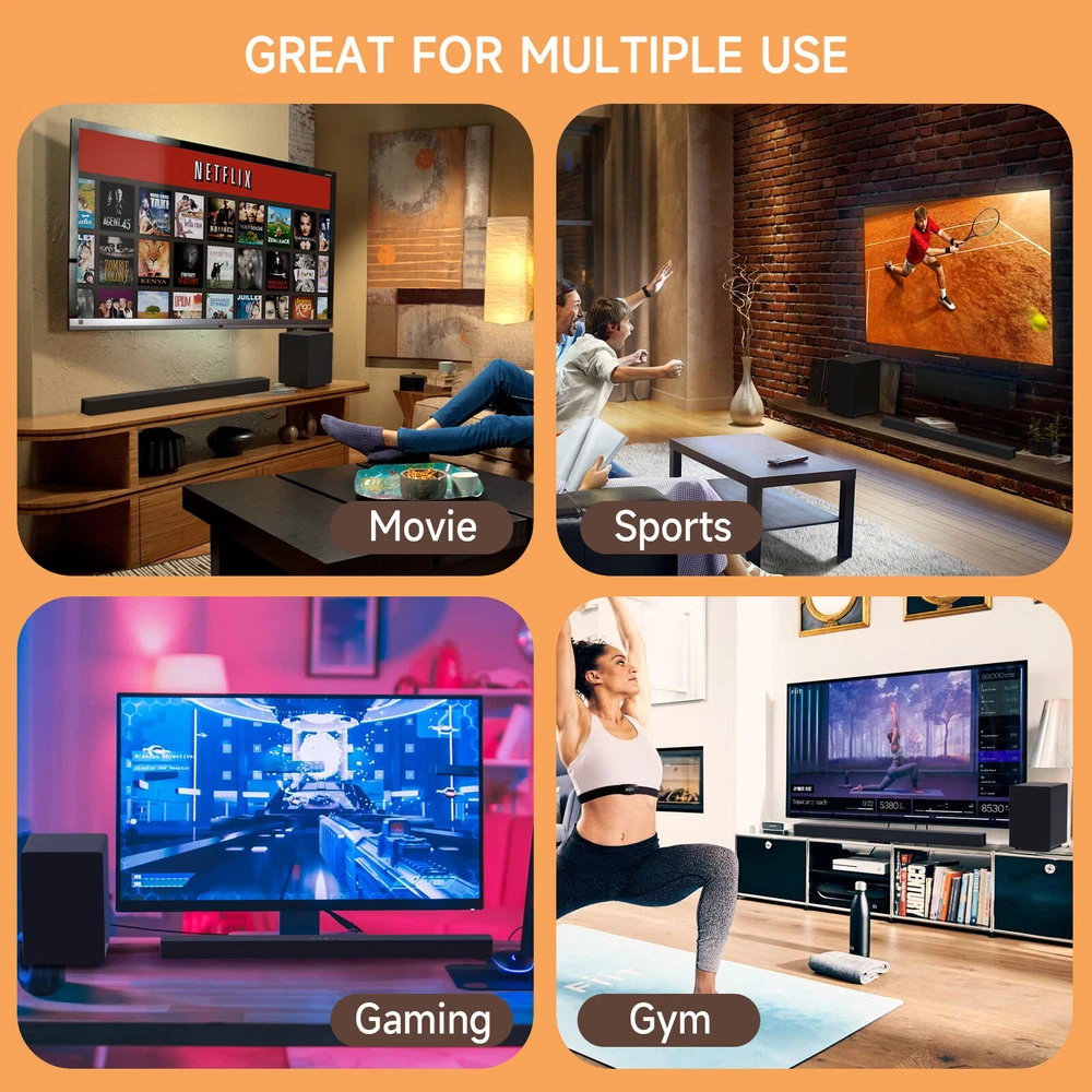 Product Description Bluetooth Subwoofer Audio BS-18E Heavy Bass Fidelity Sound Quality Home Theater Sound Blaster Echo Wall Speaker Features: 1. Bluetooth Soundbar, 2.1 Surround Sound Stereo Soundbar. 2. Professional, Multifunctional TV Soundbar, Simple design, Fashionable style, Bluetooth, HDMI, Coaxial, Optical, AUX, USB and more audio input, Passive subwoofer with high stability, to avoid delay and bring us good sense of experience. 3. Wireless bluetooth connection, Bluetooth 5.0, High stability, high-fidelity,low-latency. 4. Simple&Fashionable, Cable length 3M. 5. Stereo Surround sound. 6. Private cinema at home. 7. Easy to install, easy to use. Place On The TV Cabinet or Hang On The Wall. Wall-mounted operating instruction: ①Use suitable tools to drive the glue column into the wall. ②Use screws to fix the wall-hanging plastic part on the plastic column. ③Lock the screws to the corresponding screw holes on the back of the soundbar, and reserve about 5mm screws to protrude. ④Align the plastic parts on the wall to hang the soundbar, and pay attention to safety during the process. Specifications: Color: Black. Bluetooth Version: V5.0. Size of soundbar: 96x6x5.5 CM Weight of soundbar: 1.76 kg Size of subwoofer: 23x24x34 CM Weight of subwoofer: 3.9 kg Power source: DC 15V/3A Configuration: HF+MF+LF+ Guiding tude Package included: 1 x Speaker 1 x Subwoofer Audio 1 x Remote Control 1 x Power Cable 1 x USB Cable 1 x 3.5mm RCA Cable 1 x Audio Cable 1 x English User Manual About Us Shipping Terms Returns Contact Us About Item All items sold by us are being described to the best of our abilities, as accurate as possible, and with utmost conscientiousness on our part. However, to avoid any potential oversights, I respectfully request your assistance in helping us to make this a mutually satisfactory transaction by THOROUGHLY reviewing item description and photos, and asking all questions PRIOR TO BIDDING. Customer Satisfactory 1.We back our commitment with superb service, 100% full money back and a customer satisfaction guarantee. 2.I am here and ready to assist you with any questions or concerns you might have before or after the purchase. 3.My goal is to make sure you are a happy customer and pleasant shopping with us. Feedback If you are satisfied with the purchase and our total service, your comment is very important in our business success. Please take a minute to leave us a positive feedback with an overall Detailed Selling Rating (DSR) of 5. Our eBay account setup auto feedback, so eBay system gives you automatically Positive feedback back after your positive feedback left. IF YOU PLAN TO GIVE US A NEUTRAL/NEGATIVE FEEDBACK OR OPEN EBAY/PAYPAL CASE, PLEASE WRITE TO US IMMEDIATELY SO THAT WE CAN DO OUR BEST TO RESOLVE YOUR PROBLEM. United States Buyers Same business day free shipping within United States All orders will be shipped through USPS First Class, UPS and Fedex depends on the weight of the items. Shipping Time Usually ,Parcel will be delivered 2-5 working day include Handling time. Sometimes shiping time may has a little delay, such as Bad wether,Holidays We stand behind everything that we sell and will do everything possible to assure you are satisfied. When you receive your purchase if you are not 100% satisfied, please sent me ebay message and we will do our best to make you happy. If you still want to return your purchase, simply ship the item(s) back to us and we will refund your original purchase price and the original shipping charge. Buyers are responsible for the postal cost of returning the items. We must be notified of the intent to return your item within 30 days of receiving the item. Items returned must be in the same condition that they were received. How to return 1,Please ask us for return address . 2,Shipping back the package . The RMA#(Return Merchant Authorization Number = Your ebay ID) must be clearly written on the return package ,Otherwise the package will be refused. 3,Sent us the return tracking number. 4,All returns will be inspected prior to a credit being issued. 1:Returns are accepted within 60 days of purchase. 2:All returned items MUST BE in the original packaging. 3:We will be happy to assist you if if any item needs to be returned or replaced 4:Please don't open a return request before contacting us first to solve, many thanks. Sent ebay message in English If you have any questions, our Customer Service staffs welcome you to sent me ebay message. We strive to answer all questions and resolve any problems as quickly as possible. Business Hours: Monday-Saturday 9:00-17:00 About Us About Item All items sold by us are being described to the best of our abilities, as accurate as possible, and with utmost conscientiousness on our part. However, to avoid any potential oversights, I respectfully request your assistance in helping us to make this a mutually satisfactory transaction by THOROUGHLY reviewing item description and photos, and asking all questions PRIOR TO BIDDING. Customer Satisfactory 1.We back our commitment with superb service, 100% full money back and a customer satisfaction guarantee. 2.I am here and ready to assist you with any questions or concerns you might have before or after the purchase. 3.My goal is to make sure you are a happy customer and pleasant shopping with us. Feedback If you are satisfied with the purchase and our total service, your comment is very important in our business success. Please take a minute to leave us a positive feedback with an overall Detailed Selling Rating (DSR) of 5. Our eBay account setup auto feedback, so eBay system gives you automatically Positive feedback back after your positive feedback left. IF YOU PLAN TO GIVE US A NEUTRAL/NEGATIVE FEEDBACK OR OPEN EBAY/PAYPAL CASE, PLEASE WRITE TO US IMMEDIATELY SO THAT WE CAN DO OUR BEST TO RESOLVE YOUR PROBLEM. Shipping United States Buyers Same business day free shipping within United States All orders will be shipped through USPS First Class, UPS and