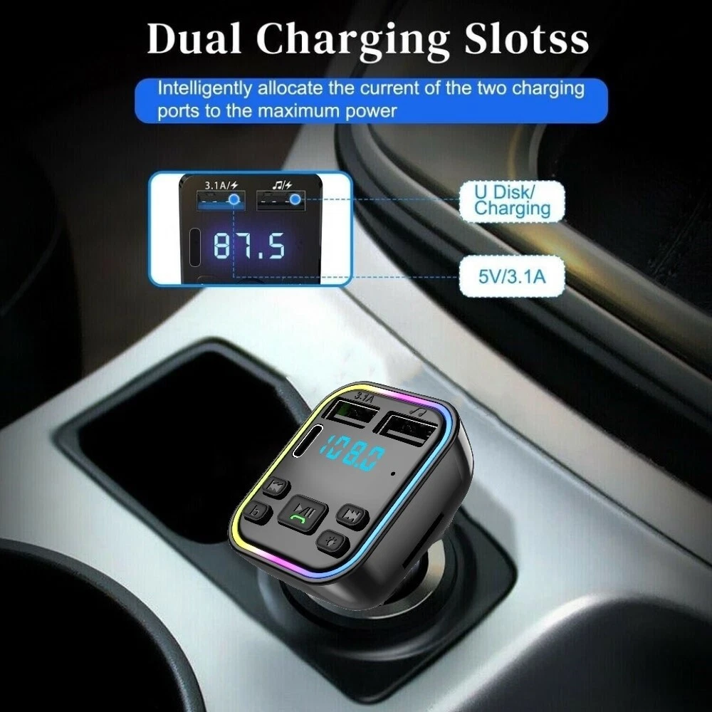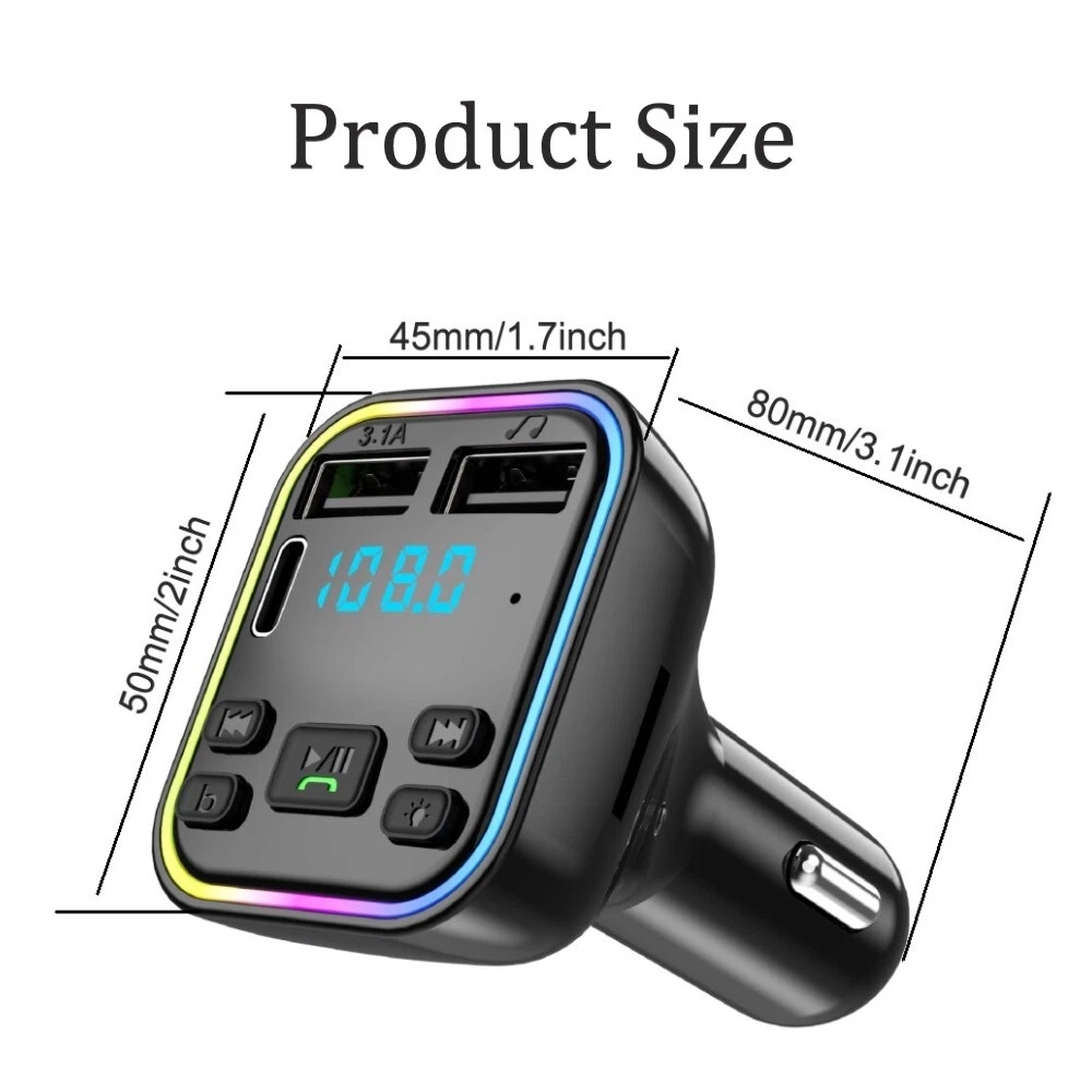 Product Description Bluetooth Transmitter Car Adapter FM MP3 Player Hands free Radio Kit USB Charger Features: • New Wireless Vehicle Bluetooth FM Transmitter Car Charger • 100% Brand new and high quality • Multifunctional: Wireless connection Bluetooth, Build in microphone, FM transmitter+USB Charger+MP3 Player • Supports Bluetooth hand-free phone call , build-in microphone. • With FM transmitter function, supports adjustment. Full-frequency covered 87.5-108.0MHz. • Allowed to accept MicroSD card up to 64G and play playing music on MP3/WMA form. • Come with 2 USB charging ports (5V/3.1A and 1.0A) for charging your smart phone or tablet. • The main button on the middle supports to change music or swap call, the near rotary knob is designed to adjust the volume. 7-color RGB Backlight: This radio transmitter has 7-color LED backlight, so you can get a visually stunning color display. Product Details: • Bluetooth version: V5.1 • Bluetooth protocol: A2DP, AVRCP, HFP • Bluetooth band: 2.4 GHz-2.48 GHz • Bluetooth Transmission distance: 5m • FM frequency: 87.5-108 mhz • FM transfer distance: 2meters • Input voltage: 12-24V • Output: 5V/1.0A 5V/3.1A • Music format: mp3, wma Packaging Includes: 1 x FM Transmitter 1 x User guide About Us Payment Shipping Terms Contact Us We are NOT selling products. We are selling SERVICES! This is our philosophy in this ebay business. Our goal is to provide excellent before and after sales services to all our customers. We will much appreciate with fast payment ,thank you so much! 1. We ship from USA Stock . We will provide a tracking number after shipping. 2. We will process and ship the package within 1 business days. If you have any issue with the transaction, please contact us before leaving Negative feedback. We will respond and solve your issue ASAP. Please contact us via eBay Message .Thank you so much ! About Us We are NOT selling products. We are selling SERVICES! This is our philosophy in this ebay business. Our goal is to provide excellent before and after sales services to all our customers. Payment We will much appreciate with fast payment ,thank you so much! Shipping 1. We ship from USA Stock . We will provide a tracking number after shipping. 2. We will process and ship the package within 1 business days. Terms If you have any issue with the transaction, please contact us before leaving Negative feedback. We will respond and solve your issue ASAP. Contact Us Please contact us via eBay Message .Thank you so much ! Hot Sale !! TWS Bluetooth headphone Wireless Earbuds Sporting Headset Premium Sound W/ Mic 10.95 USD Free shipping Professional Camera Phone Holder Tripod Stand for Smartphone iPhone Samsung+ Bag 11.35 USD Free shipping For Magsafe Car Mount Charger for iPhone Magnetic 15W Dash Window Charging Mount 19.99 USD Free shipping LED Corn Light Bulb 300W Eq 168-Chip E26 5000lm 30W Cool Daylight 6000K 9.9 USD Free shipping Shoe Rack 10 Layers 9 Shelf Shoes Standing Cabinet Storage Organizer Dustproof 19.99 USD Free shipping Adjustable Universal Tablet Stand Desk Holder Mount For Cell Phone iPad iPhone 9.99 USD Free shipping powered by