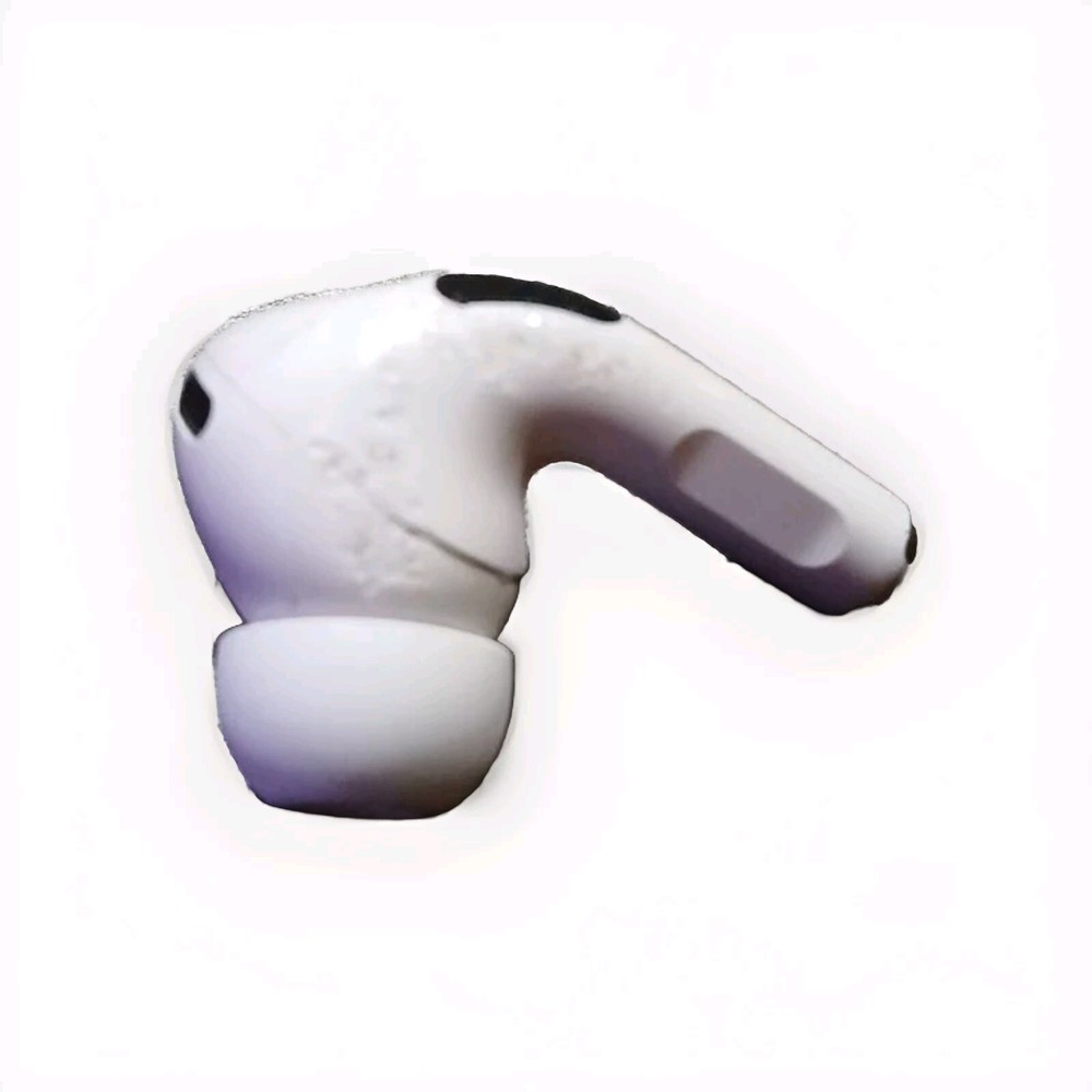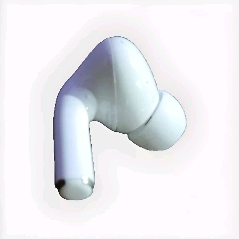 This product is a single Apple Airpod from the 2023 version, featuring Bluetooth wireless technology and a built-in microphone. It comes in a sleek white color and is designed as an in-ear earbud. Please note that the case is not included, and there is slight damage to the product.