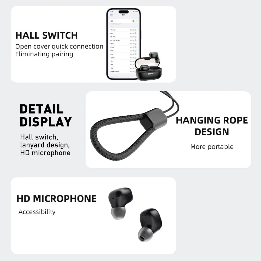 Description: Type: Bluetooth Earphones Microphone Type: Built-In Number of Earpieces: Double Type: Canal Earbud (In Ear Canal) Color: Black Earpieces: Left & Right Model: Chooes from drop down Feature: 1. Unique Style: Made of memory silicone, it is non-deforming so it can clip there firmly without dropping. 2. HiFi Super Bass: Built-in high-grade composite moving coils deliver lossless sound, clear treble and deep bass, bringing you utmost pleasure of listening. 3. Intelligent Noise Reduction: Lower noise, high-definition binaural call. Communicate clearly. 921modigt Your Best Online Business Partner Bluetooth Wireless Earbuds Ear Clip Headphones Sport Headset U17S / U17 / U17H Description: Type: Bluetooth Earphones Microphone Type: Built-In Number of Earpieces: Double Type: Canal Earbud (In Ear Canal) Color: Black Earpieces: Left & Right Model: Chooes from drop down Feature: 1. Unique Style: Made of memory silicone, it is non-deforming so it can clip there firmly without dropping. 2. HiFi Super Bass: Built-in high-grade composite moving coils deliver lossless sound, clear treble and deep bass, bringing you utmost pleasure of listening. 3. Intelligent Noise Reduction: Lower noise, high-definition binaural call. Communicate clearly. 4. Single Earbud Weighs Only 5Grams: With an ultra-light body, it offers a comfortable and secure fit that do esn't cause any ear fatigue or discomfort , providing an unrestricted listening experience that feels weightless and comfortable. 5. Long Battery Life: Fully charged once, the earphones can be used for 3 or 4 hours. If used with the charging case, it can work for up to 16 hours. Stand by for over 120 hours. No frequent power off. You can happily play games, listen to music and watch videos. 6. Easy Touch Control: Rich functions are started by touch operation. No complicated procedures. You will get used to controlling the earphones quickly. Usage: Step 1: Turn on the phone’s Bluetooth. Step 2: Open the charging case cover. Step 3: The connection interface will show on the phone. Step 4: Wait for the phone screen to show that the connection is successful, then take out the headphones and use it. Package Includes: 2x Earphone (left&right) 1x Charging Case 1x User Manual Note: Come With original box If you have any problem, please contact us, thank you! Item Specifics Brand DUDAO Type Earbud (In Ear) Model DUDAO U17H/U17S/U17 Connectivity Bluetooth Color Black Manufactured Earphnoe, Headset, Wireless Earphone Number of Earpieces Double Form Factor Ear Clip/ In ear Microphone Type Built-In Compatible Brand Universal, For Apple, For Google, For LG, For Samsung Name Ear Clip Earphone/ TWS Mini Earbud/ OWS Earphone Compatible Model Universal Occasion Sports & Running & Exercise & Entertainment & Music & Driving Features1 Active Noise Cancellation, Bone Conduction,Wireless Features2 Built-in Microphone, Built-In On/Off Switch,Wireless Char Features3 Call functions, HD Voice, Noise Cancellation, Features4 Rechargeable Battery, Stereo, Surround Sound, Features5 Sweat-Proof, Touch Control, Waterproof, Water-Resistant Waterproof IPX6 Other name OWS Open-Air Conduction Wireless Earphone Payment Returns 921modigt Your Best Online Business Partner DESCRIPTION PAYMENT SHIPPING RETURN POLICY CONTACT US Shop Category Store Home Health & Beauty Portable Fans Barbecue Tools Air Filters Leather Repair Memory Cards Headsets Other Hot Item DUDAO Bluetooth Earbud Headphones / Clip-ear Bone Conduction Wireless Headset USD 18.99 Wireless Bluetooth Headsets Sport Earbuds EAR CLIP/TWS MINI EARBUD/OWS EARPHONES USD 18.99 Wireless Bone Conduction Headphones Bluetooth Wireless Sport Headset Earbuds USD 19.29 Bluetooth Headset Wireless Earphones Earbuds Stereo In-Ear/Ear Clip Headphones USD 19.79 DUDAO Clip-ear Bone Conduction Wireless Headset Bluetooth Sport Earbud Headphone USD 18.99 New List Item NEW Wireless Ear Clip Bone Conduction Headphones Bluetooth 5.3 Earbuds Sport USD 18.99 Bluetooth 5.3 Headset Wireless Earphones Earbuds Stereo Ear Clip Headphones USD 18.89 DUDAO U17H Bluetooth Earphone Earbuds & Charging Case Clip-On Headphones White USD 17.99 Bluetooth 5.3 Wireless Earbuds Ear Clip Sport Headset Bone Conduction Headphones USD 18.09 Bluetooth 5.3 Earbuds Ear Clip Bone Conduction Headphone Sport Headset Wireless USD 18.55 Help & Info Payment Policy Shipping Policy Return Policy FAQ About Us Bluetooth Wireless Earbuds Ear Clip Headphones Sport Headset U17S / U17 / U17H Description: Type: Bluetooth Earphones Microphone Type: Built-In Number of Earpieces: Double Type: Canal Earbud (In Ear Canal) Color: Black Earpieces: Left & Right Model: Chooes from drop down Feature: 1. Unique Style: Made of memory silicone, it is non-deforming so it can clip there firmly without dropping. 2. HiFi Super Bass: Built-in high-grade composite moving coils deliver lossless sound, clear treble and deep bass, bringing you utmost pleasure of listening. 3. Intelligent Noise Reduction: Lower noise, high-definition binaural call. Communicate clearly. 4. Single Earbud Weighs Only 5Grams: With an ultra-light body, it offers a comfortable and secure fit that do esn't cause any ear fatigue or discomfort , providing an unrestricted listening experience that feels weightless and comfortable. 5. Long Battery Life: Fully charged once, the earphones can be used for 3 or 4 hours. If used with the charging case, it can work for up to 16 hours. Stand by for over 120 hours. No frequent power off. You can happily play games, listen to music and watch videos. 6. Easy Touch Control: Rich functions are started by touch operation. No complicated procedures. You will get used to controlling the earphones quickly. Usage: Step 1: Turn on the phone’s Bluetooth. Step 2: Open the charging case cover. Step 3: The connection interface will show on the phone. Step 4: Wait for the phone screen to show that the connection is successful, then take out the headphones and use it. Package Includes: 2x Earphone (left&right) 1x C