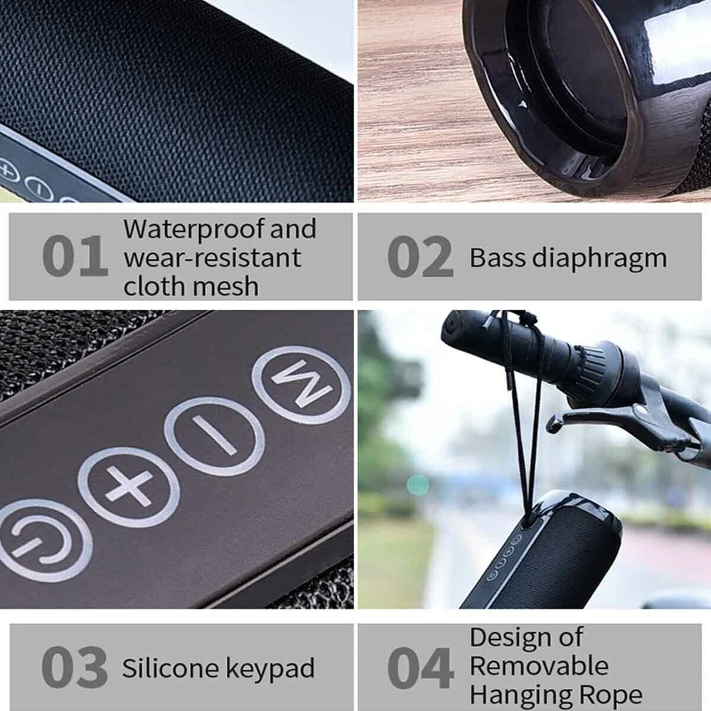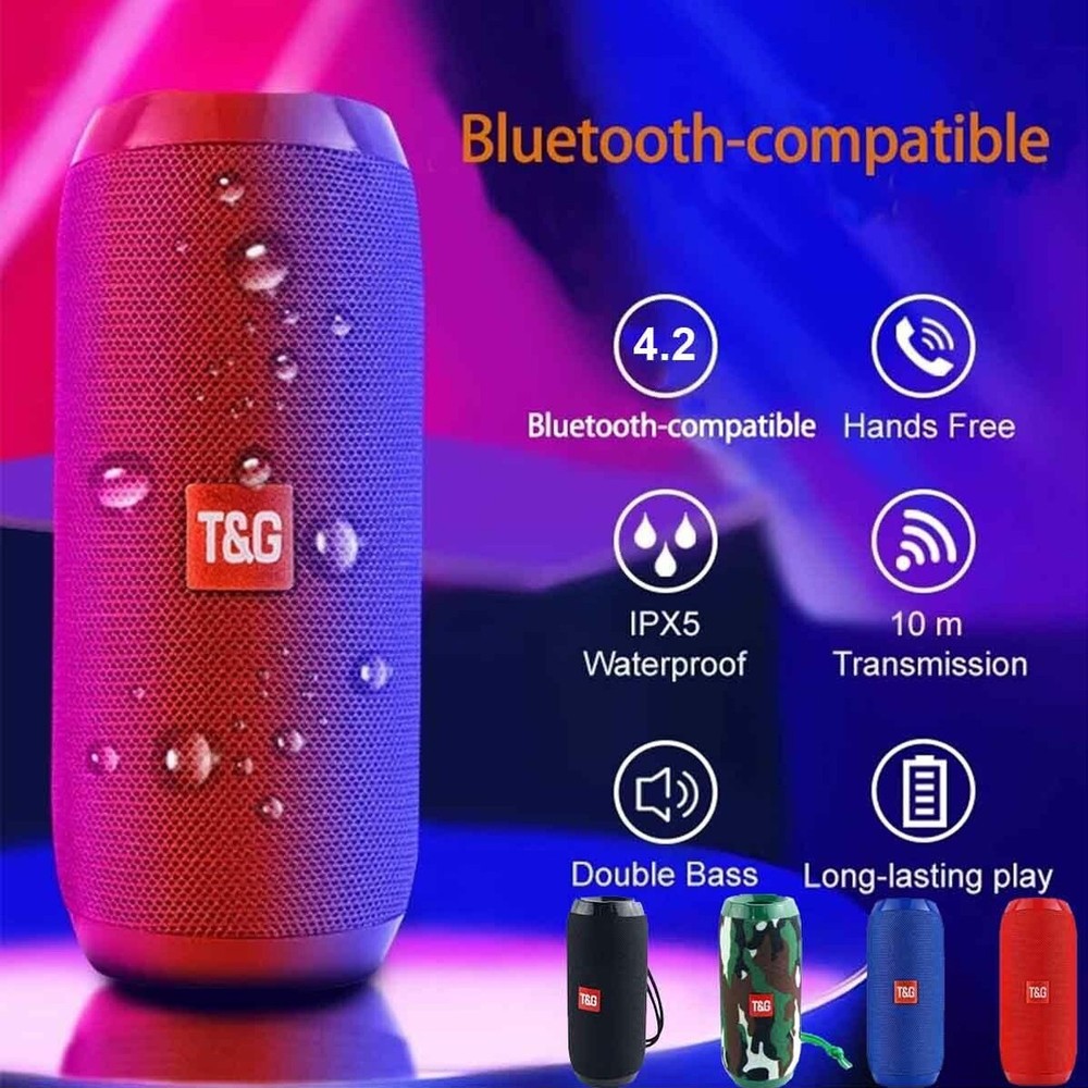 Waterproof Bluetooth Speaker Portable Wireless Speakers Subwoofer Outdoor Loudspeaker Stereo Music Surround TF FM Radio With Mic Using advanced Bluetooth audio decoding chip, support all Bluetooth device connection; Support FM radio, you can directly search the radio station in the listening area; the tone is soft and clear and dynamic, each level is distinct; Direct reading of TF card and U disk; Bluetooth receiving distance can be as long as 10 meters. Support LINE IN audio input, provide you with computer speaker function. Can be directly connected to mobile/tablet/and TV Bluetooth pairing to play music; In the state of no Bluetooth connection, automatically shut down for half an hour. Specifications: Color: Black, Blue, Red, Camouflage Support A2DP,AVRCP, Handsfree profile,FM radio Bluetooth version: V5.0 Wireless transmission range: 10M Audio noise ratio: ≥90db Battery capacity: 1200mAh Built-in voltage: 3.7V Normal volume playback: 3H~4H Speaker specifications: ¢45mm*2 Speaker power: 4Ω/5W*2 Frequency response: 120HZ-20KHZ Product size:68.8*68.8*160mm Stand-alone weight: 147g Charging voltage: 5V/500MA Package Included: 1 x Bluetooth audio 1 x Neutral specification 1 x USB data cable 1 x Audio cable On Oct 12, 2025 at 01:55:51 PDT, seller added the following information: