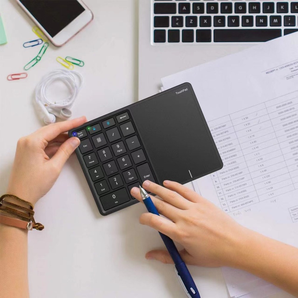 You Might Also Like USB Cable Male to Female with Switch ON/OFF Extension Connector Raspberry 6.31 USD 7.01 USD Free shipping 10% off 12PCS Round NTAG215 NFC Tags Blank Cards RFID Waterpoof Chip for TagMo Amiibo 6.82 USD 7.58 USD Free shipping 10% off Motherboard USB2.0 to USB3.0 Computer Hardware Adapter Plug Adapter Connector 6.67 USD 7.41 USD Free shipping 10% off USB Smart Card Reader DNIE ATM CAC IC ID SIM Card Reader for Windows Linux 10.13 USD 11.26 USD Free shipping 10% off Type-C To Magsafe 3 Converter USB-C Magnetic Adapter For Charging Plug Mac New 13.05 USD 14.5 USD Free shipping 10% off 1.5mm Thick Double Domed Mineral Watch Crystal 30mm-38mm Diameter Concave Glass 6.65 USD 7.39 USD Free shipping 10% off USB Magnetic Headset Charger Charging Base Cable Cord For Aftershokz Shokz AS800 6.62 USD 7.36 USD Free shipping 10% off For PS1 Optical Drive Head KSM-440AEM Original Replacement Full Optical Lens 17.65 USD 19.61 USD Free shipping 10% off 40*40mm Thermoelectric Power Generator Peltier TEG Module High Temperature 150℃ 7.66 USD 8.51 USD Free shipping 10% off For NZXT Kraken ELITE 240/280/360 14-Pin Liquid Cooler Connector Cable Cord Wire 22.38 USD 24.87 USD Free shipping 10% off 2-Pin Universal USB Data Charging Cable Magnetic Charger For Smart Watch 2.84mm 6.22 USD 6.91 USD Free shipping 10% off Car LED Digital Voltmeter Battery Tester Voltage Meter Gauge Universal 12V-24V 7.44 USD 8.27 USD Free shipping 10% off Product Description If you have any questions, please contact customer service first, do not open disputes easily, thank you! Features: 2.4G wireless bluetooth-compatibility dual-mode, plug-and-play device, no driver required; perfect touch C-shaped charging port. Full-size keys make it easier to locate and press the number you're looking for, increasing speed and accuracy. The numeric keypad supports NumLock, Tab, Delete and more. There are shortcut keys to open the computer calculator directly. Quiet and soft to the touch, the ergonomic tilt provides extra comfort and helps reduce stress for those working with spreadsheets, accounting documents or financial applications. COMPATIBILITY - Works with PCs and desktop computers with Windows, iOS operating systems. Product Description: 1.Bluetooth-compatible + 2.4G dual-mode numeric keypad/keypad; one-touch switching for fast connection. 2.Automatic identification of Windows/IOS/Android/Mac OS system. 3.Multi-gesture large touchpad, left and right down key. 4.One key to open the computer calculator (Win). 5. Built-in polymer lithium 500mah. 6.Type-C, charging time about 2-3 hours. 7. Program: Nordic Bluetooth-compatible chip, touch original phase Specification: Model No.: BT14(Bluetooth-compatibility+2.4G dual mode) Material: ABS plastic Support system: Windows,iOS,Android,MacOS Number of keys: 22 keys Bluetooth-compatibility program: Nordic dual-mode (N51802 chip) Bluetooth-compatibility version: Bluetooth-compatibility 4.2 Keyboard life (keystrokes): 5 million times Response Speed: 30 ms Wireless/Bluetooth-compatible transmission distance: 10 meters Battery: 3.7V lithium battery, 303450-500mAh Operating voltage/current: 3.7V/typing <3mA, standby about 2.6mA, touch <10mA, hibernation <30uA Mouse return rate: 100 Usage time: about 133 hours of continuous typing, uninterrupted movement of the mouse > 40 hours Standby time: 18 months Color: black, iron gray Product size: 16.7x11.8x1.2(0.6) cm Package Included: 1*Numeric Keyboard(Others not included) Note: 1. Please allow 1-3mm error due to manual measurement. Please make sure you don't mind before ordering. 2. Please allow 1-3g weight error. Please make sure you don't mind before ordering. 3. Due to the lighting of the photos and the difference of monitors, the pictures may not reflect the actual color of the real item. Please make sure you don't mind before ordering, thank you! About Us We accept all payments authorized by eBay. powered by