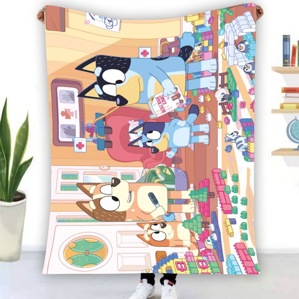 Bluey Cartoon Characters Soft Warm Single-Side Printing Flannel Fleece Blanket