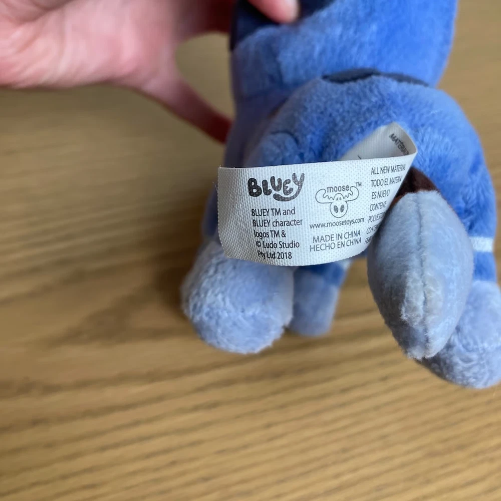 Brand:Moose ToysType:Socks Stuffed PlushCharacter Family:Bluey & FriendsCountry/Region of Manufacture:ChinaUPC:Does not applygtin13:Does not applyRecommended Age Range:3+Size:Small (6-14 in)Color:BlueAnimal:Dog