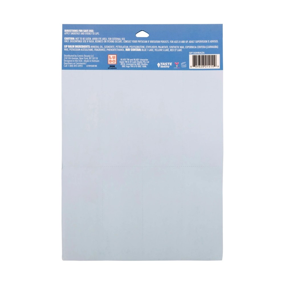 Bluey Tear and Share Lip Balm Set – 8 Pack | Multiple Flavors | Kids Lip Care | Age 3+ Make lip care fun with the Bluey Tear and Share Lip Balm Set ! Featuring 8 colorful tubes with delicious flavors, this set is perfect for kids who love the playful world of Bluey . Designed for ages 3 and up, these lip balms keep lips soft, smooth, and moisturized all day. ✅ 8-Pack Variety – Includes multiple fun, fruity flavors to keep lips hydrated and happy. ✅ Tear and Share Design – Perfect for gifting, sharing with friends, or party favors. ✅ Kid-Friendly Formula – Gentle on young lips with moisturizing ingredients. ✅ Official Bluey Design – Features beloved Bluey characters for extra fun. ✅ Great for Everyday Use – Ideal for school, playdates, travel, or stocking stuffers. Bring joy and hydration together with the Bluey Tear and Share Lip Balm Set – a perfect mix of fun and lip care for kids!