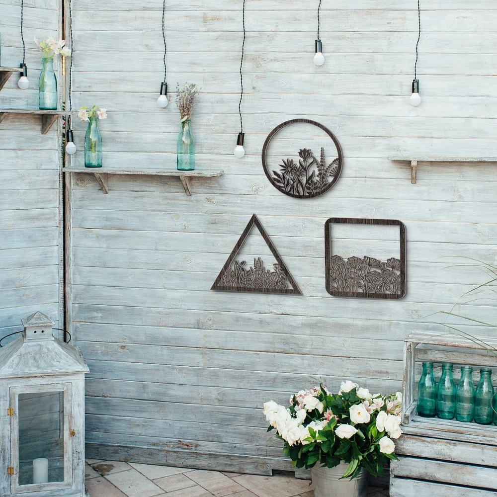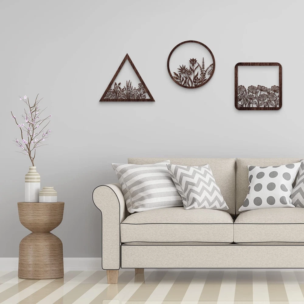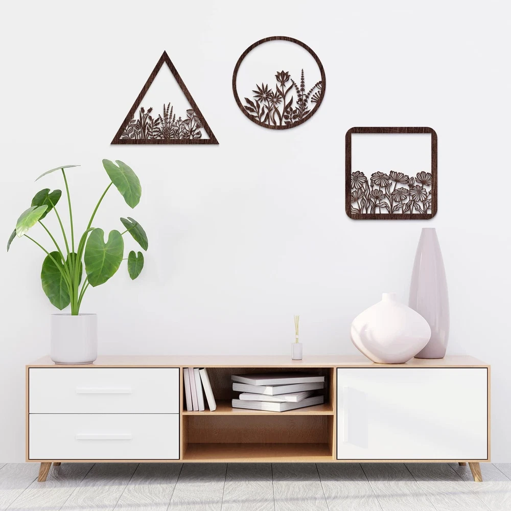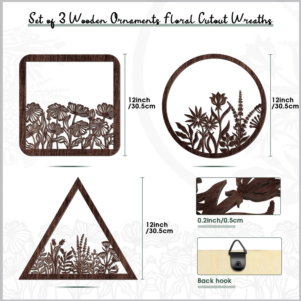 Blulu 3 Pieces Wall Art Wood Wall Pediments Sacred Boho Flower Wall Art Wooden Floral Wall Decor Minimalist Floral Hanging Flower Artwork for Home Dining Room Christmas Favor(Brown, 12 Inch) Product Details Size: 12 Inch Color: Brown Brand: Blulu MPN: ZJ-Blulu-66828 UPC: Does not apply EAN: Does not apply Product Dimensions: 12 x 12 x 0.2 inches Item Weight: 12.6 ounces Manufacturer: Blulu Country of Origin: China Item model number: ZJ-Blulu-66828 Date First Available: April 3, 2023 Package Content: you will receive 3 pieces of geometry decors with 3 different styles, which are nice home decors for you to decorate your home in a charming style, can be hung together as a set or individually Wide Application: the wood laser cut art with novelty and attractive designs, suitable for entryway, patio, lawn, bathroom, living room, dorm, or you can apply it at restaurant, hotels, cafe, pubs, office to give your customers a warm welcome No Installation Required: this wood craved art comes ready to hang out of the package with the pre-mounted hook on the back, no installation required, will not scratch your wall and door, can also be placed against shelves, cabinet, or table top Size Information: the laser cut flower displays feature 3 assorted shapes, round, triangle and square, and measure 30.5 cm/ 12 inches in length and width, 0.5 cm/ 0.2 inch in thickness, a proper size to hang on the wall and front door, be noticed by family and guests Built to Long Last: made of quality wood, the floral hanging decorations are well polished with no scratches, nice to touch without burrs, delicately carved with laser cutting process, carefully painted, not easy to fade or peel, sturdy for long time use Features: Only for home decor: This geometry decor is only an ideal home decoration, but also a nice addition to wedding backdrop, ceremony or reception, bridal shower, baby shower, birthday decor, farmhouse and nursery wall decor. Warm favors choice: The lovely and attractive design makes this laser artwork a nice choice as a holiday, birthday, housewarming favors for your friends, family members, neighbors, and colleagues. Specifications: Material: wood Color: as the pictures shown Size: 30.5 cm/ 12 inches in length and width, 0.5 cm/ 0.2 inch in thickness Package includes: 3 x Wooden flower hanging wall arts Note: Manual measurement, please allow slight errors on size. The color may exist slight difference due to different screen displays.