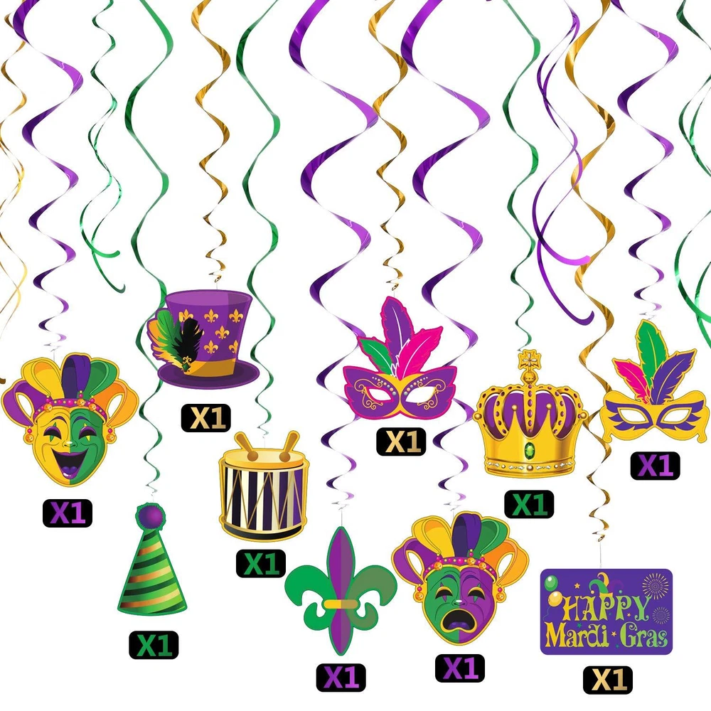 Blulu Mardi Gras Party Hanging Swirls Party Ceiling Decorations Mardi Gras Decorations for Party Mardi Gras Theme Celebration Baby Shower Birthday Party Supplies Event Supplies 30ct Feature: Good quality and not easy to break, these party favors will be applied to your next Mardi Gras party event. Funny Mardi Gras party background decorations for Mardi Gras theme celebration, baby shower, birthday, festivals or other special occasions. You can decorate your mardi gras party with these gold, purple and green hanging swirls to make a huge hit. Package includes: 10 x Foil swirl decorations with cutouts 20 x Double spiral decorations without cutout Fun and easy to use: Gold, purple and green swirls with Mardi Gras themed cutouts in the shape of masquerade masks, crowns and fleur de lis cutouts, colorful and festive and added a lot to the decorations, an easy way to add some fun and color to any party. Specifications: Size: each Mardi Gras cutouts cards approx. 7.8 x 7.8 inch Color: gold, purple and green Quantity: 30 pieces Notes: Due to computer resolution, sunlight, indoor lights, and other factors, there might be a little color difference. Package includes: there are 10 different characters in this set, including 30 pieces foil swirl decorations, 10 foil swirl decorations with cutouts, 20 double spiral decorations without cutouts; These Mardi Gras party foil swirl decorations feature metallic foil swirls with double-sided cardstock Size: each Mardi Gras cutouts cards approx. 7.8 x 7.8 inch; Each swirl can extend to approx 28 - 36 inch in length; You can hang it anywhere you like with the hook on the top, hanging the animal swirls from the ceiling, window, mantel, overhangs, doorway, archway, branches in trees or outdoor events Sturdy material: quality card paper, not flimsy and easily bent, double-sided printed, beautiful party swirl decorations and Mardi Gras adorable styles; These Mardi Gras party hanging swirls are durable enough to be applied for many times in different party occasions Wide application: suitable for Mardi Gras inspired party, the bright color match for Mardi Gras will make you an impressive party, well made decoration kit for home decoration or special occasions, give your home party a special touch; You can use one package to be a party centerpiece Cute design: swirl decorations feature gold, purple and green swirl decorations with Mardi Gras themed cutouts in the shape of masquerade masks, crowns and fleur de lis, etc., various cute shapes will make your party more special and impress your guests young and old alike Shipping from the USA All of our products are shipped from the USA, ensuring quick delivery to your destination. Payment We offer the following payment methods: PayPal, credit card, bank transfer, and eBay's secure payment system. Free Shipping & Free Returns Shipping within the USA is FREE. Additionally, any return is absolutely free for you. Risk-Free Purchase You have the option to return an item within 30 days without any justification. We cover the return shipping costs! Fast Shipping We ship immediately upon receipt of payment. Generally, the package is delivered within 2-3 days in the USA. If it takes longer, we will contact you. Quality and Costs Made in Europe, USA, China No customs fees or additional charges Total satisfaction guarantee Invoice with declared VAT available upon request in .pdf format Feedback Your feedback is very important to us. After you pay for your purchase, you will automatically receive positive feedback from us.