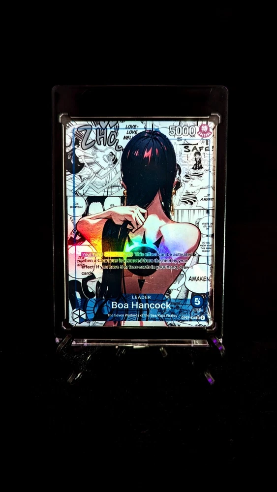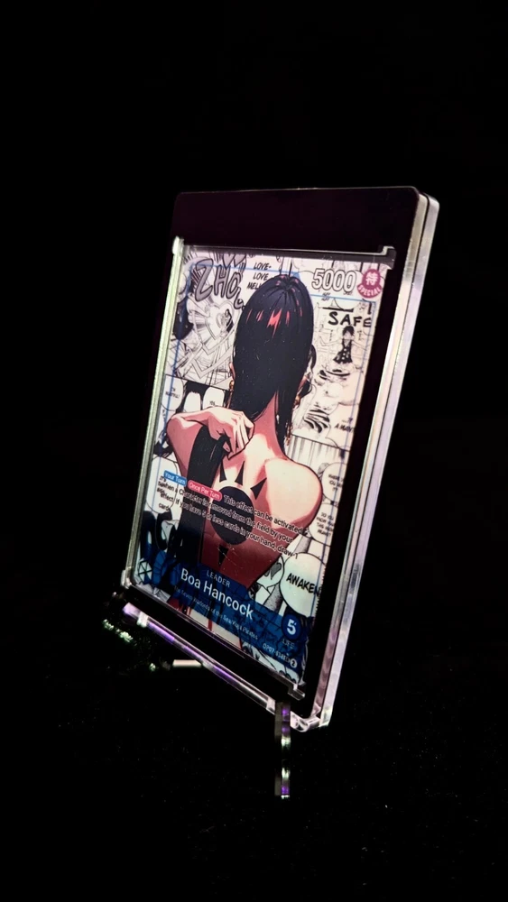 Holographic Foil Boa Hancock Leader Card One Piece Card Game Proxies Set: OP07-038 Variant: Y Card size: Standard (2.5 x 3.5 inches) Materials: Glossy Vinyl, One Piece Playing Card --------------------------------------------------------------------------- Are you a cultured and distinguished gentleman that enjoys waifus? If so, then you are in the right place! Each card is handmade, and made to order. I have experimented and choose the best materials to replicate the quality of the original card. Each card is laminated with protective vinyl (waterproof), and applied on an official One Piece Card Game leader card. I inspected every card before shipping to ensure each card is up to standard. I love each card I create and I hope you do too 💖. View my store for see all the proxies! Please contact me for any questions or concerns. Thank you! --------------------------------------------------------------------------- This is a fan-made custom card that is a parody of the actual card game.