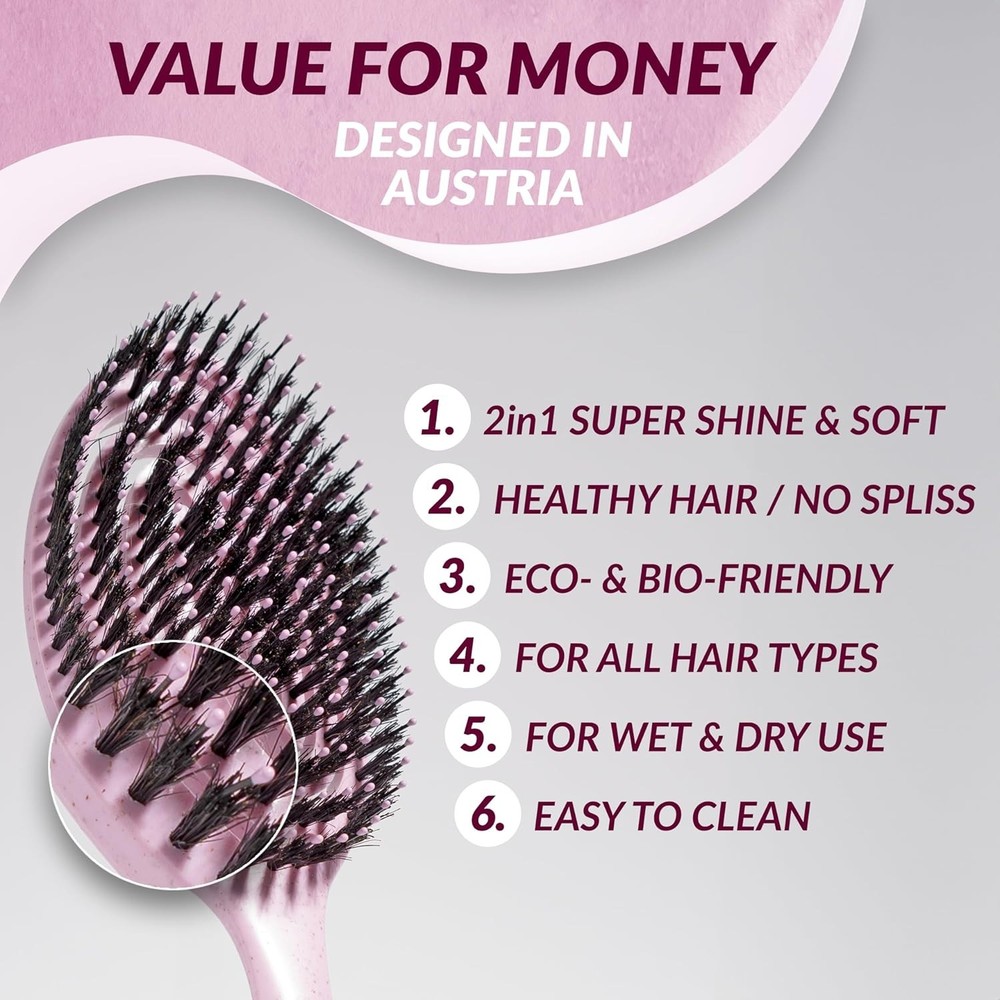 Boar Bristle Hair Brush - Suitable for Every Hairtype with Extra Bristles