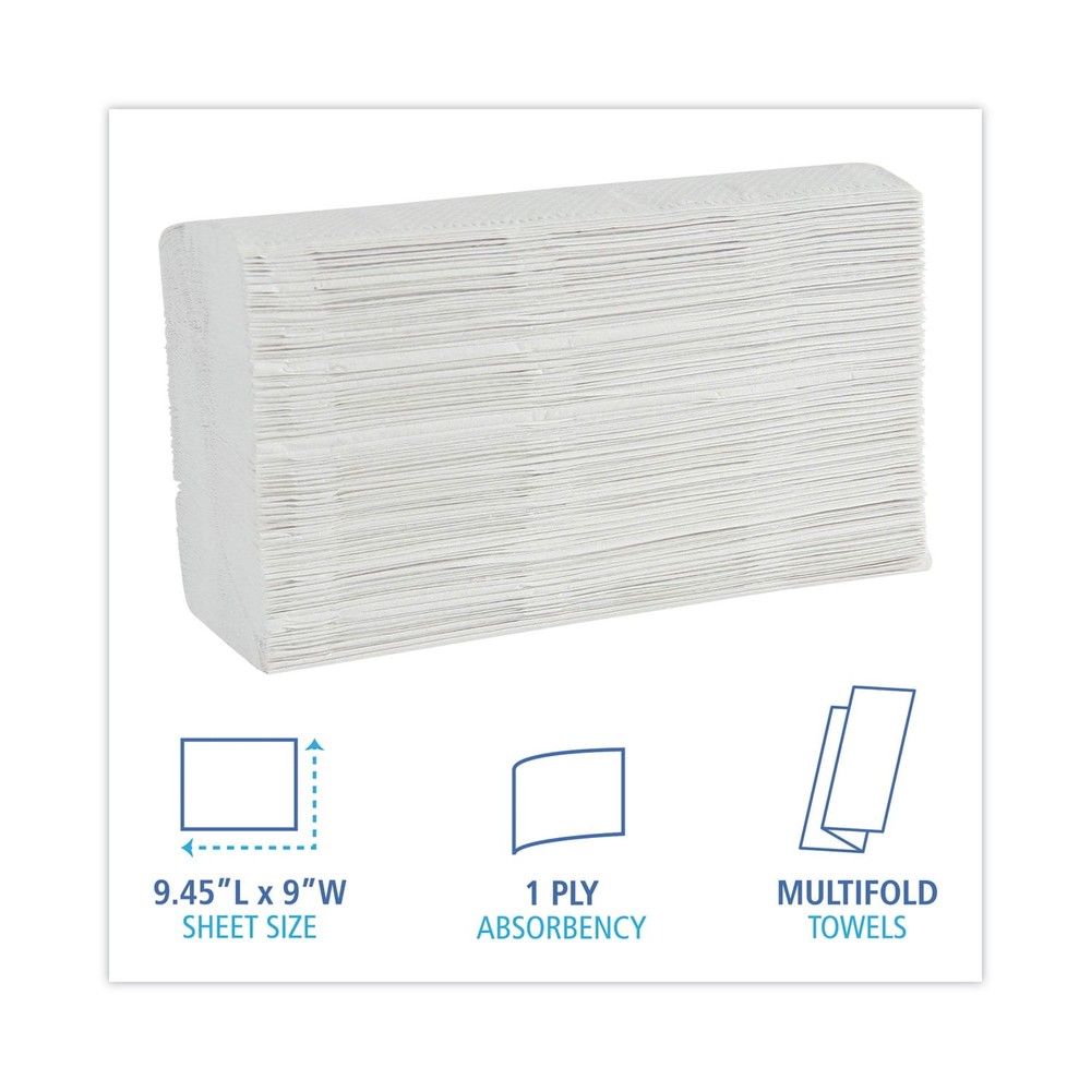 Absorbent, folded towels for hand drying in commercial washrooms. Boardwalk full sheet textured towels are easy-to-grab and wipe hands clean and dry. An economical choice for high-traffic commercial or office restrooms. Each pack is individually wrapped for easy transport and storage. Drying with paper towels is safer than air dryers, which can redistribute even more germs on hands. Keep hands clean and dry by only touching the towel that’s taken. Dispenser sold separately. Multi-Fold—9 x 9.5. 250 towels per pack. Towel/Wipe Type: Multi-Fold; Application: Hand Washing; Washrooms; Material(s): Paper; Number of Plies: 1. Absorbent, folded towels for hand drying in commercial washrooms. Textured towels are easy-to-grab and wipe hands clean and dry. An economical choice for high-traffic commercial or office restrooms. Each pack is individually wrapped for easy transport and storage. Dispenser sold separately. Model Number: BWK6200