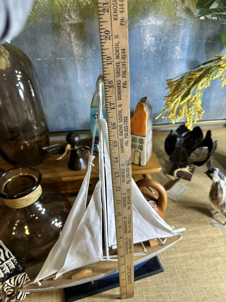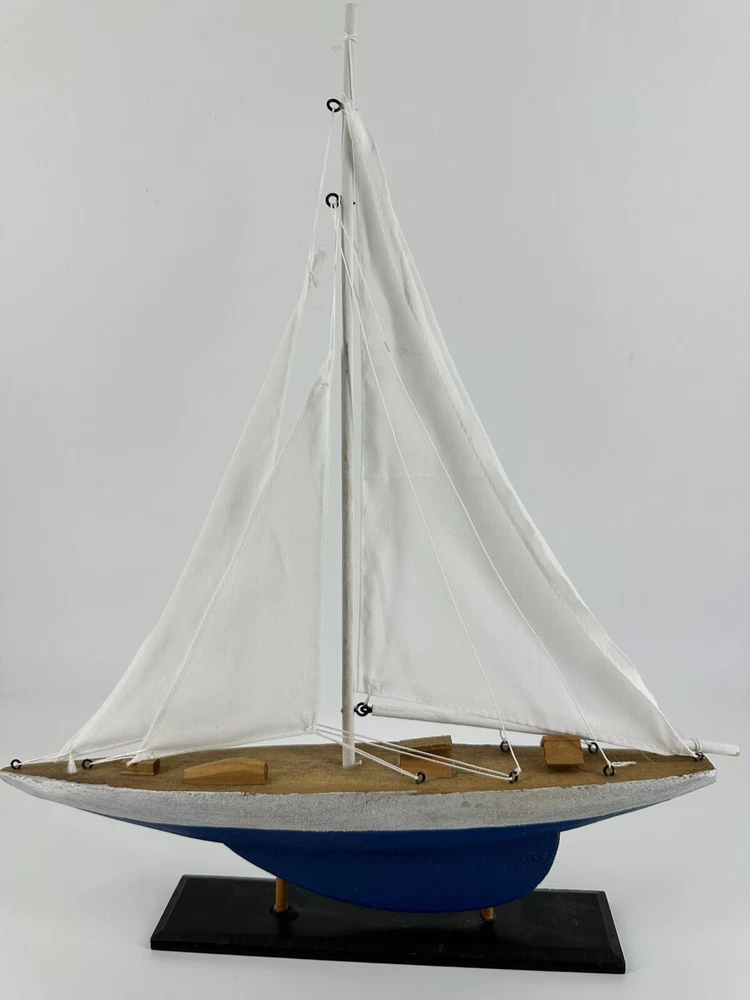 Elevate your space with a touch of maritime charm with our Wooden Sailing Ship Model. This beautifully crafted ornament boasts intricate details that capture the essence of a serene sea voyage. At 18 inches in height and 14 inches in width, it's the perfect size to make a statement on any room's wall or mantle, adding a nostalgic and decorative flair to your home or office. Crafted from synthetic material with a classic blue color scheme, this sailboat statue resonates with the spirit of nautical adventures. It is a vintage piece that does not require any additional parts and can be displayed in a vertical orientation without the need for batteries. Designed for everyone from kids to adults, this unbranded model is an ideal gift for various occasions, including birthdays and holidays, or simply as a thoughtful addition to your own collection. Good vintage condition. See all pictures. Thank you! You will receive the beautiful sailboat that is within the pictures. All other items are those items that I will be listing either this week or next week in my Ebay shop. ( YouBeYou LLC ) So, you will get a sneak peak of what is coming up next! :) If you have any questions even after you have purchased the item --- I am here for you to answer any questions that you may have! I strive to work diligently with every buyer to ensure they are a satisfied buyer, so please contact me anytime. This is a pre-owned item and I take great care to accurately describe the item but please see the pictures for full details. While we do our best to list every item in detail, these are vintage and pre-owned items, and some flaws are to be expected. Please see all photos/ video as they are a large part of the description of our items. Items come from a smoke-free environment. Each item is described in accurate detail with multiple measurements and various photos at different angles front and back, side to side, top and bottom. I have additional similar items that I have yet to list that you may be interested in. Feel free to follow my store ( YouBeYou LLC ) to see those when posted. Please see all photos/ video as they are a large part of the description of our items. I strive to make every purchase a pleasant experience. Please feel confidence in you purchase that I'll make every effort to correct any issues that may arise. If used, there are always some signs of wear -- well, because it is used, vintage, or antique. Most items are used -- Each item is inspected for quality. It is very important to us that you have a happy Ebay experience! Thank you for supporting a small business like ours! (Note: pictures may include measurements, and some have a video.)