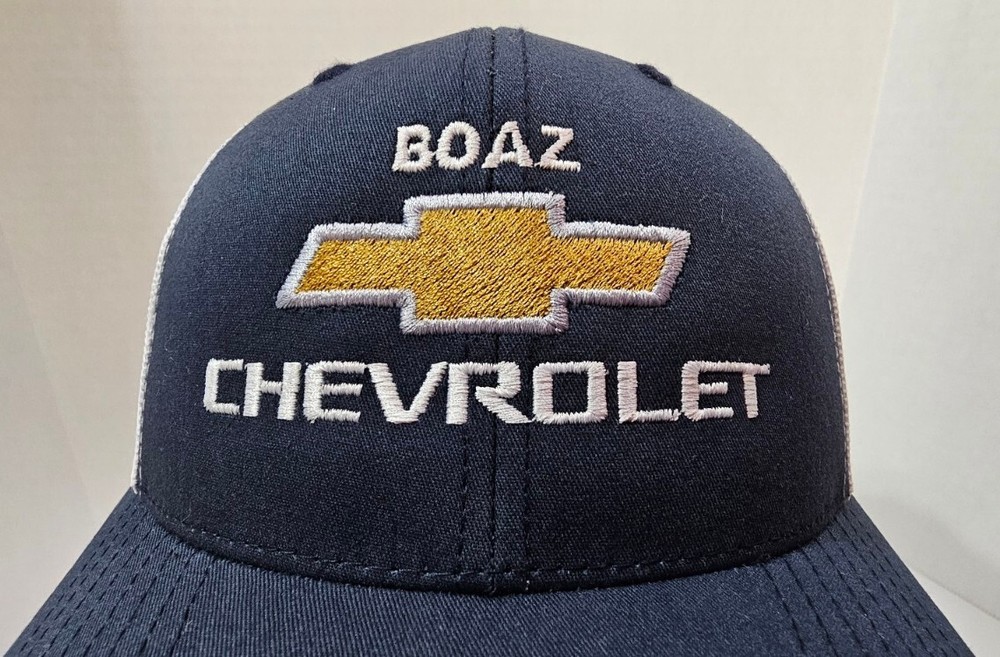 Boaz Chevrolet Embroidered Logo Navy White Mesh Snapback Cap New With Sticker