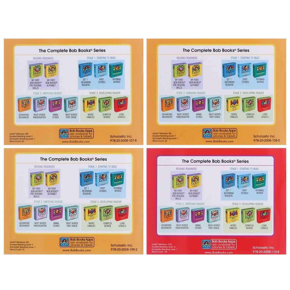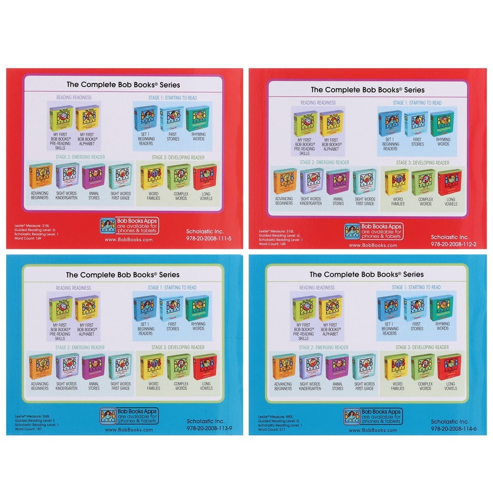 Powered by Frooition Home About Feedback Newsletter Contact Children's Ages (0 - 5) Other Children's Ages (5 - 7) Children's Ages (7 - 9) Children's Ages (9 - 14) Young Adult Fiction Non-Fiction Clearance Sale Welcome to books2door ebay shop We want to encourage a love of reading in all children. That's why we have been offering exceptional books at affordable prices since 2004. We look forward to being a part of your next story. Bob Books Set 4: Complex Words (Stage 3: Developing Reader) 8 Books -Age 4+ -PB Item Description Bob Books Set 4: Complex Words (Stage 3: Developing Reader) 8 Books Collection Set Author : Scholastic Publisher : Scholastic Reading Age: 4+ Format : Paperback Titles in this set: Ten Men Bump! Cat and Mouse The Swimmers Samantha Willy's Wish Jumper and the Clown Max and the Tom Cats Plus Teaching Guide Description Readers at this level are able to tackle longer sentences and longer books but still love the accomplishment of reading a book all the way through. Bob Books: Set 4 Complex Words continues with our incremental introduction of phonics and sight words. With careful pacing, we introduce more blends, more sight words and longer words. Even though stories are longer, the simple narrative and design help children focus their skills on decoding and sight words. The delightful illustrations and humor help keep young readers engaged with the more challenging material. Inside the box you'll find: 8 easy-to-read books, 16-24 pages each Many four and five letter words (one syllable). Many consonant blends (such as nd, sn, st, ck) A few vowel combinations (such as ou, ee, oo) Up to 150 words per book About Bob Books Bob Books is a true first reader series, designed to make helping children learn to read simple and straightforward. The clean layout, short words, and simple phonics make learning to read a fun and natural step for a child that knows the alphabet. Companion workbooks extend children's reading journey by allowing them to practice the skills learned in the books. Bob Books is designed to give young children the tools to cross from learning letters to reading words. The award-winning beginning reader book sets start slowly and progress from books with three letter words, to books with more than one sentence per page. By meeting children at the right level, parents are often amazed at how quickly their child is able to sound out words when reading their first Bob Book . Bob Books covers four reading stages... Reading Readiness (Pre-Readings): Skills Recognize shapes, patterns, and other pre-reading skills Stage 1: Starting to Read From learning the alphabet to sounding out your first words Stage 2: Emerging Readers Sentences become longer and sight words are introduced Stage 3: Developing Readers Words and sentences become longer, and new rules are introduced. More Items! View more great items Winnie and Wilbur 5 Picture Books Set With Audio CD's - Ages 2-6 - Paperback £19.99 Frog by Max Velthuijs 10 Picture Books Collection Set - Ages 0-5 - Paperback £20.99 Hello World! by Sweet Cherry 12 Books Collection Box Set - Ages 2+ - Board Book £17.47 Storytime Picture Books Collection 7 Books Set - Ages 2-8 - Paperback £11.99 Shop by category Children's ages 0-5 Children's ages 5-7 Children's ages 7-9 Children's ages 9-14 Young Adult Fiction non-fiction Clearance Sale Other Home About Feedback Newsletter Contact Powered by Frooition Frooition | No-js Template | eBay design, eBay store design, eBay shop design, eBay template design, eBay listing design (ver:froo_no_js) This listing is currently undergoing maintenance, we apologise for any inconvenience caused.