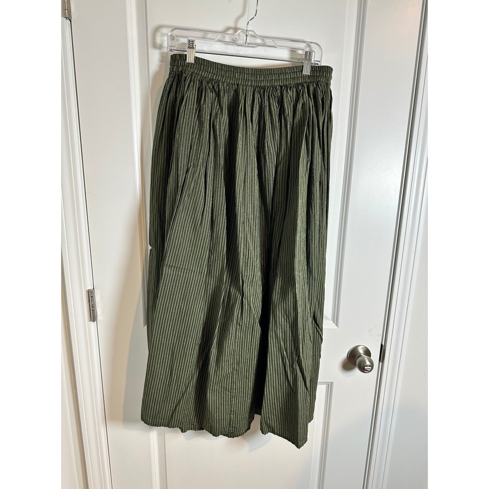 This skirt is a dream! The olive green with metallic threads gives it a gorgeous, subtle shimmer that elevates any outfit. The elastic waist is super comfy, and the hi-low hem adds a stylish twist. Perfect for casual outings or dressed-up occasions—effortlessly chic and so flattering!