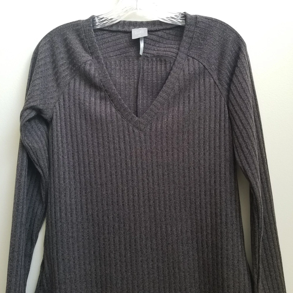 Bobi Gray Heather Rib Knit Lightweight Pullover Sweater Size XSmall Womens VNeck - Pre-Owned in Very Good Condition - Measurement – Approximate Shoulder to Shoulder - 14 in Chest Armpit to Armpit - 15 1/2 in Arm Length - 22 in Length – 30 1/2 in - Gray Heather Lightweight Rib Knit Long Sleeve Sweater. 97% Polyester 3% Spandex - Spring, Fall, Winter, Work, Office, Lunch Out, Everyday, Stylish, Chic, Trendy, Casual, Festive and Simple - Returns acceptable within 30 days of purchase unworn, in original condition - Check out my E-bay Store. Lots of Choices Available. Reduced shipping for 2 or more items. Let me know before you pay so I can send you an invoice to discount the shipping