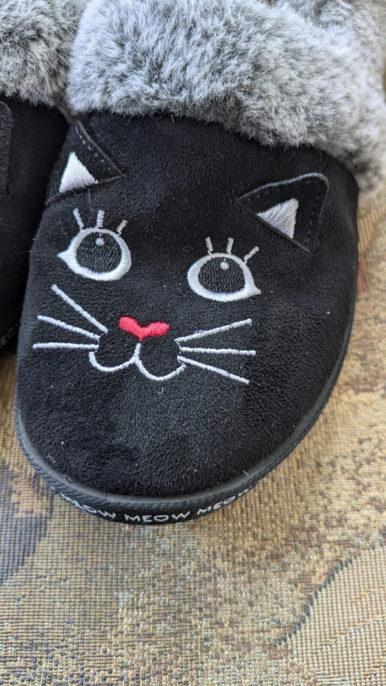 Bobs by Skechers Womens 7.5 Meow Memory Foam Pajamas Slippers Black Cats