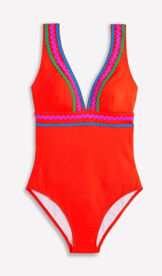 BODEN PORTO DEEP PLUNGE V-NECK SWIMSUIT BRAND NEW WITH TAGS NON-WIRED PADDED FIXED CUP NON ADJUSTABLE WIDE SHOULDER STRAPS STRETCHY, QUAILITY FABRIC FOR A PERFECT FIT THIS FABRIC PASSES UPF50+ TESTING, BUT ONLY PROTECTS AREAS COVERED YOU SHOULD STILL WEAR SPF SUNSCREEN FIRE RED WITH RIK RAK DETAIL ON STRAPS & UNDERBUST SIZE UK 12 - REGULAR LENGTH PRODUCT CODE S0140 Payment Please choose your preferred method of payment at checkout With auctions sales please make payment within 7 days or I reserve the right cancel & re-list the item & open a non-paying bidder case so I can re-claim my selling fees Shipping Orders are usually shipped within 1 day of receiving cleared funds and will be sent via Royal Mail or Hermes depending on the package size. You can buy a quicker service from the drop down at checkout. All packages are scanned in on delivery so all items are completely tracked, Please check my listing for any holiday messages, as when away posting will be delayed Returns If you wish to return your item, please open a return case & you'll be provided with address. P lease note: buyer is responsible for postage costs. All goods are checked t horoughly before sending, so I can be sure your item will be in described condition