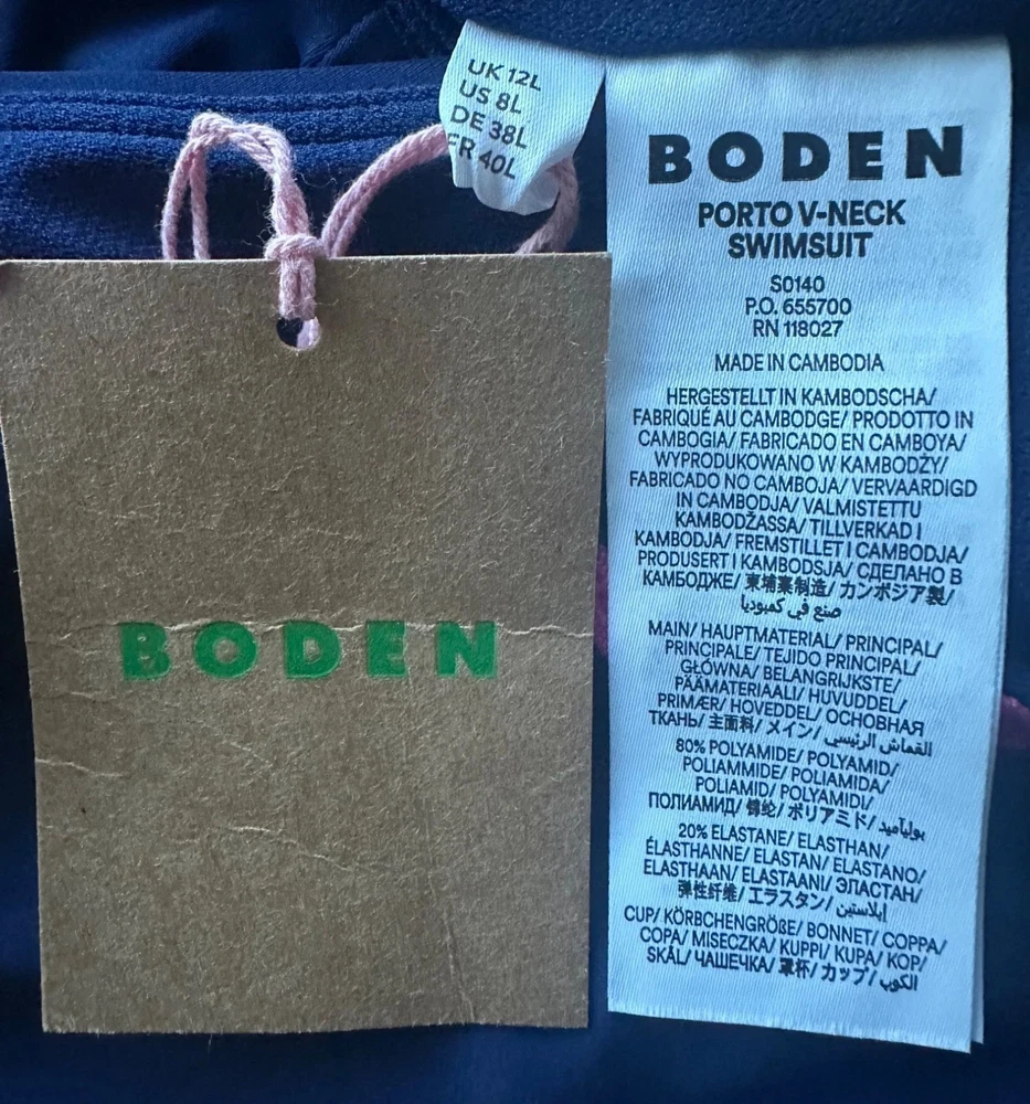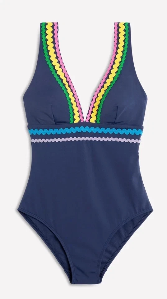 BODEN PORTO DEEP PLUNGE V-NECK SWIMSUIT BRAND NEW WITH TAGS NON-WIRED PADDED FIXED CUP NON ADJUSTABLE WIDE SHOULDER STRAPS STRETCHY, QUAILITY FABRIC FOR A PERFECT FIT THIS FABRIC PASSES UPF50+ TESTING, BUT ONLY PROTECTS AREAS COVERED YOU SHOULD STILL WEAR SPF SUNSCREEN NAVY BLUE WITH RIK RAK DETAIL ON STRAPS & UNDERBUST SIZE UK 12 - LONGER LENGTH PRODUCT CODE S0140 Payment Please choose your preferred method of payment at checkout With auctions sales please make payment within 7 days or I reserve the right cancel & re-list the item & open a non-paying bidder case so I can re-claim my selling fees Shipping Orders are usually shipped within 1 day of receiving cleared funds and will be sent via Royal Mail or Hermes depending on the package size. You can buy a quicker service from the drop down at checkout. All packages are scanned in on delivery so all items are completely tracked, Please check my listing for any holiday messages, as when away posting will be delayed Returns If you wish to return your item, please open a return case & you'll be provided with address. P lease note: buyer is responsible for postage costs. All goods are checked t horoughly before sending, so I can be sure your item will be in described condition