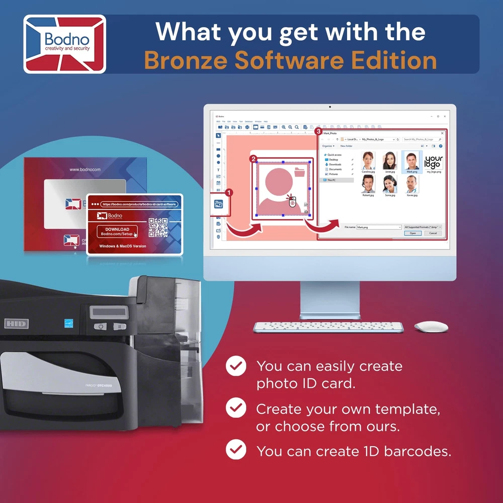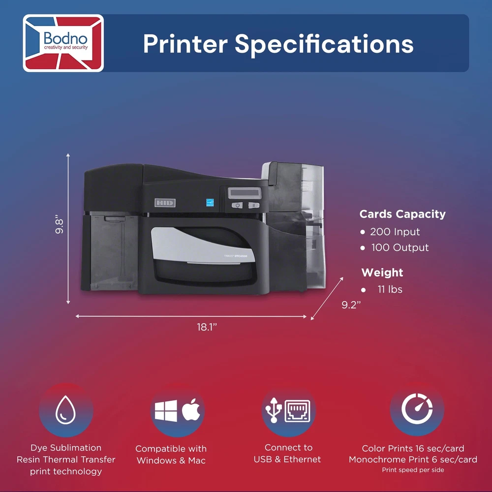 Bodno Fargo DTC4500e Dual Sided ID Card Printer Supplies Package ID Software