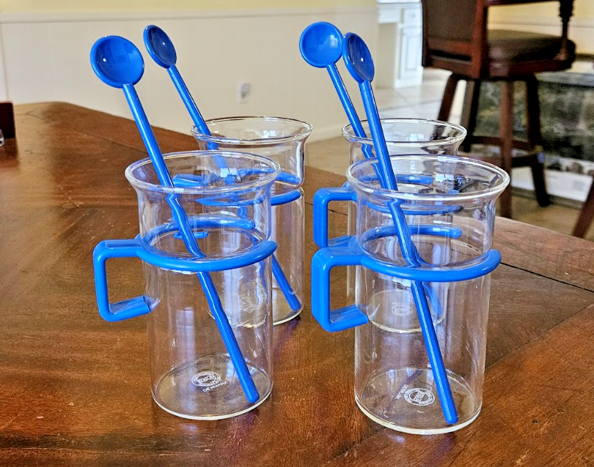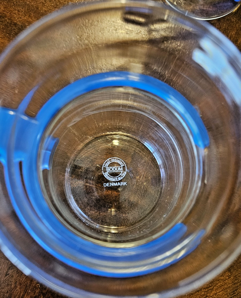 Country/Region of Manufacture:DenmarkFeatures:Unique Handles And DesignSet Includes:Coffee CupMaterial:Borasilicate GlassCapacity:10 fl ozStyle:Vintage/RetroColor:BlueBrand:BODUMNumber of Items in Set:Three-PieceType:Coffee Mug SetItem Height:4.5"Shape:RoundItem Width:2.5"Service For:4
