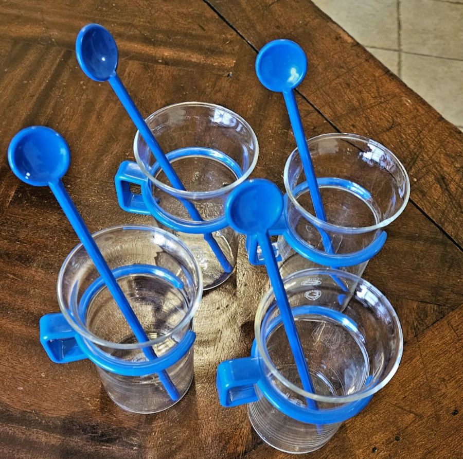 HomeBodum Blue Handle 10oz French Press Coffee and Tea Maker with Glass Cups and Stirrer TNG Picard