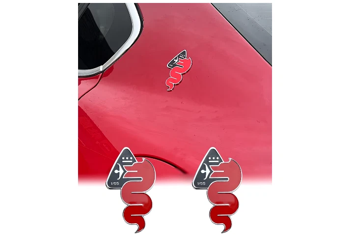 DEAR CUSTOMER, IF YOU NEED CONTACT US FIRST! NO RETURNS! THANK YOU! Body Badge Decals 1/55 Dragon Edition Decorative Label For Alfa Romeo Giulia 952 Stelvio 949 Tonale Giulietta Mito Accessories Material:Zinc alloy Specification:2 pieces/set feature: Original car version service,Does not change color,Oxidation resistance Not deformed,Scratch resistant Non-destructive paste installation Instantly enhance sports style,Beautiful atmosphere Applicable models:For Alfa Romeo
