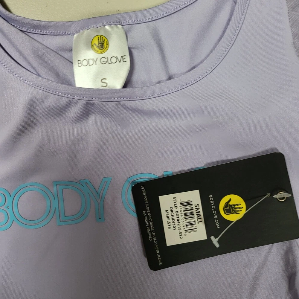 Body Glove Sport Active Top Sleeveless Small Orchid Spell Out Logo Cut Out Back