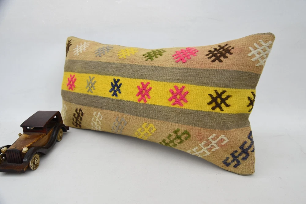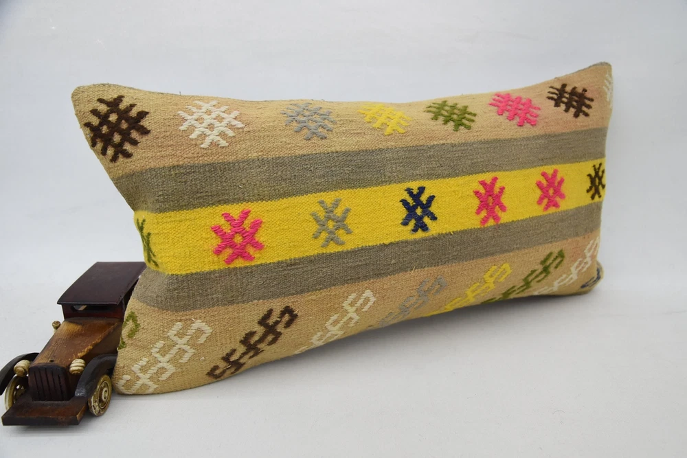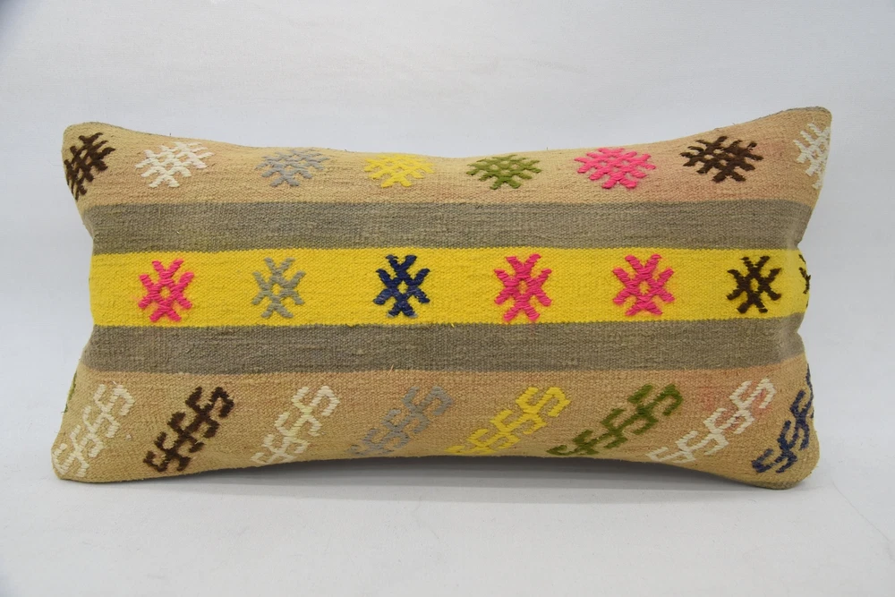 Body Pillow, 12"x24" Yellow Pillow, Kilim Pillows, Kilim Pillow Cover