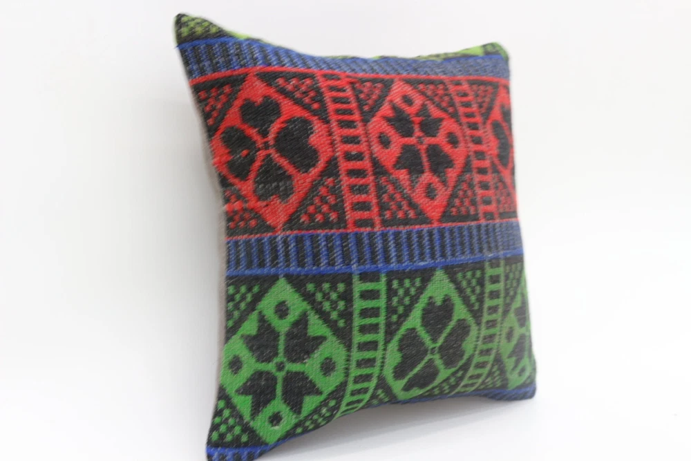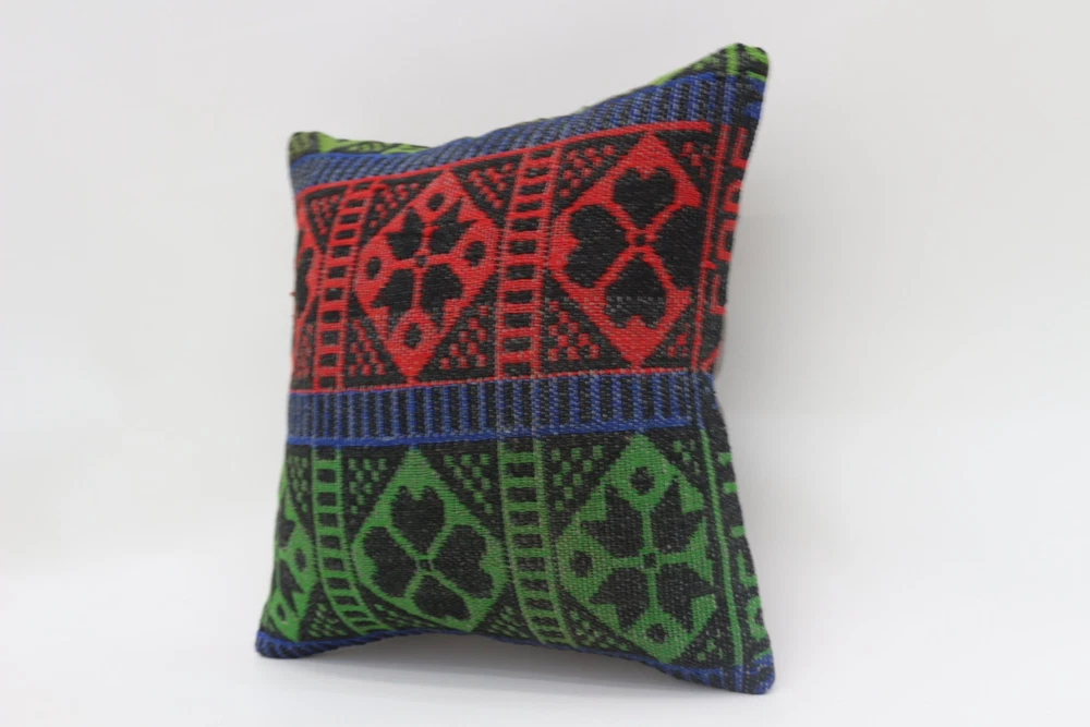 Body Pillow, Kilim Pillow Cases, Pillow for Couch, 16"x16" Green Pillow Cover