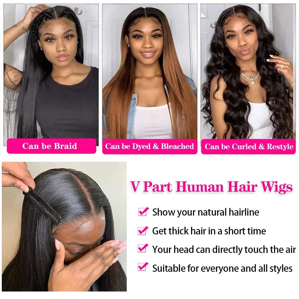 Hair Material: Best Selected Unprocessed Natural Human Hair Density: 220% full and thick Cap Size: Medium Size Lace Size: V Part Wig Hairline: Pre Plucked With Baby Hair Hair Lifespan: No Tangle No Shedding , Easy to color, 12-24 Months Life with Proper Care