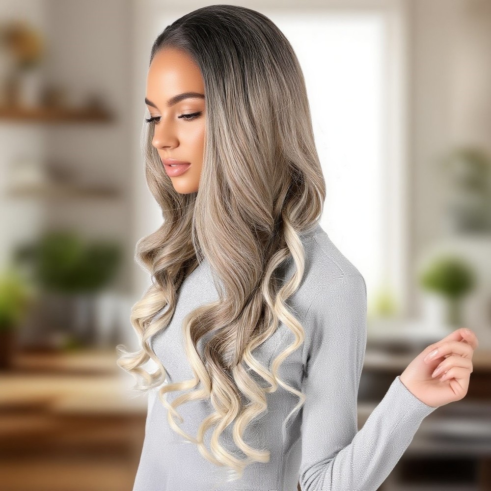 $ 192.41100% Human Hair 13x4 Lace Front Wig for Women Ombre Ash Blonde Wig