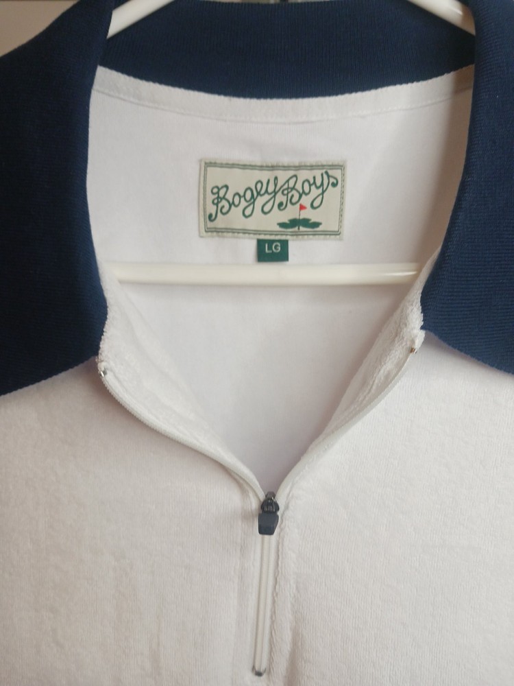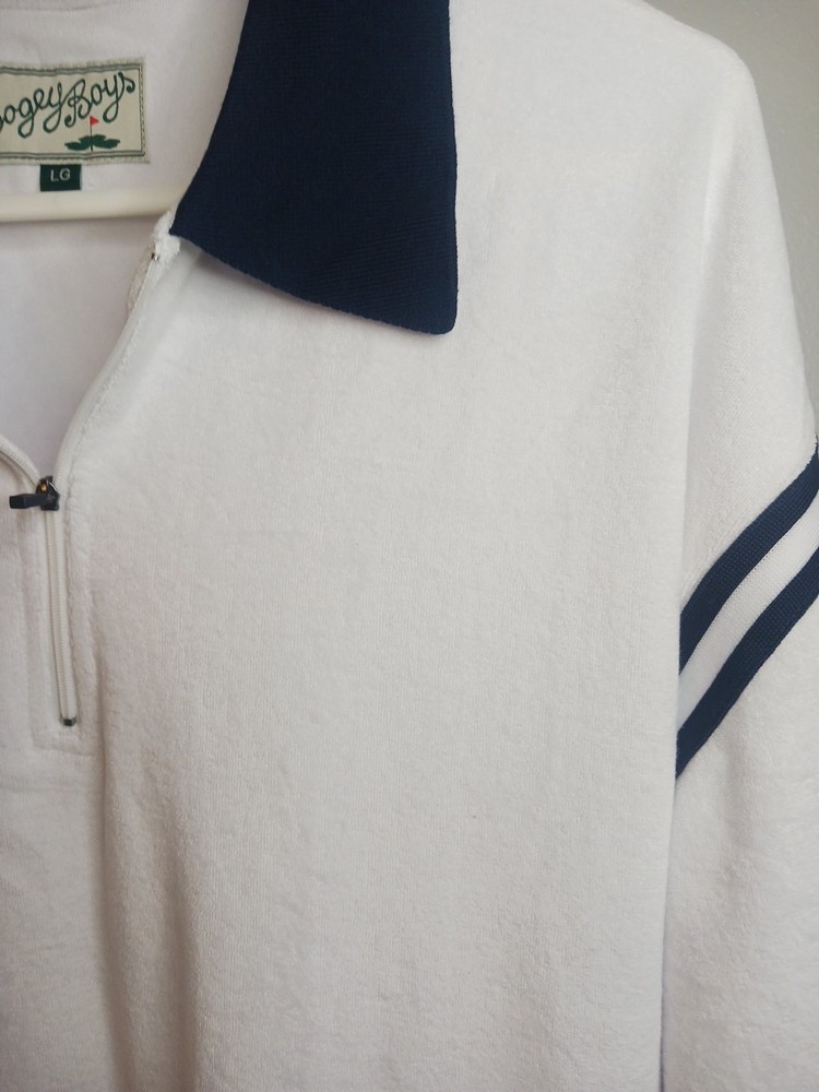 Bogey Boys White Navy Terry Cloth Quarter Zip Golf Shirt Mens Size Large