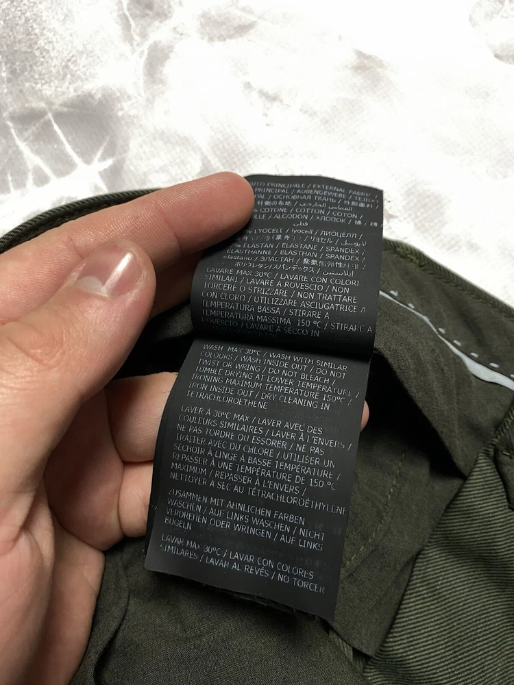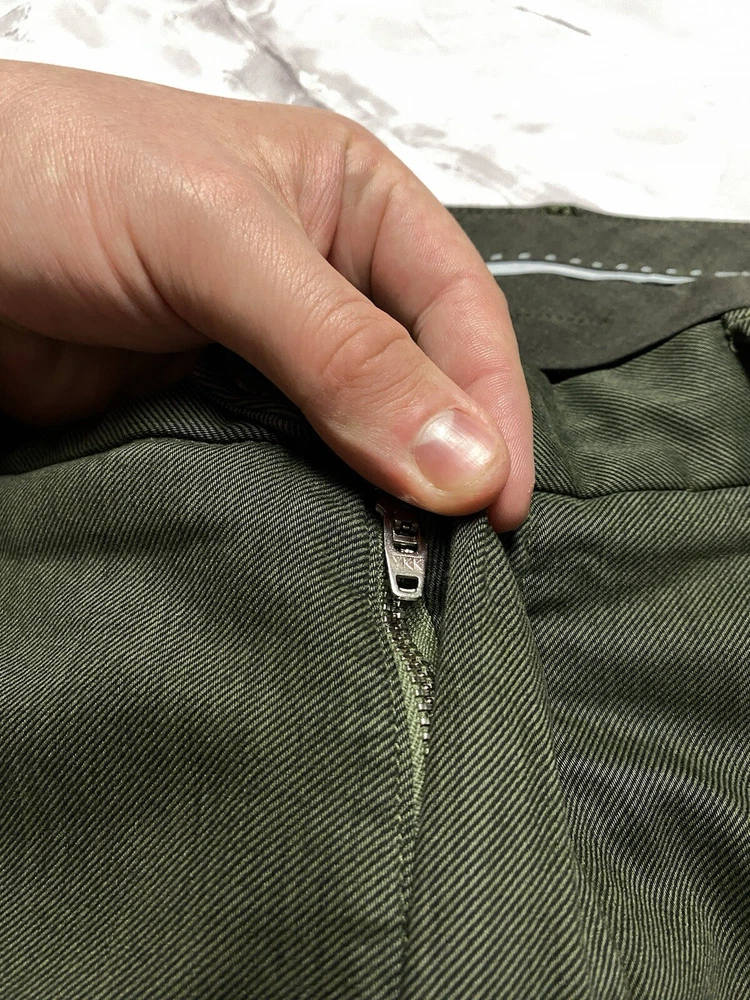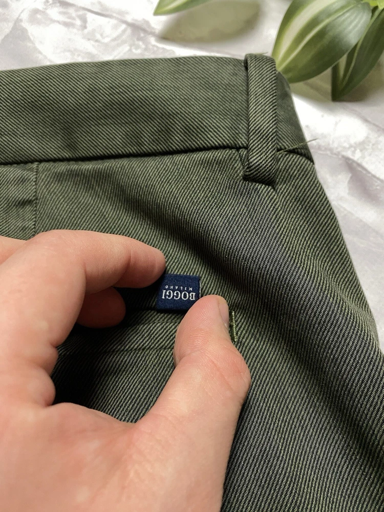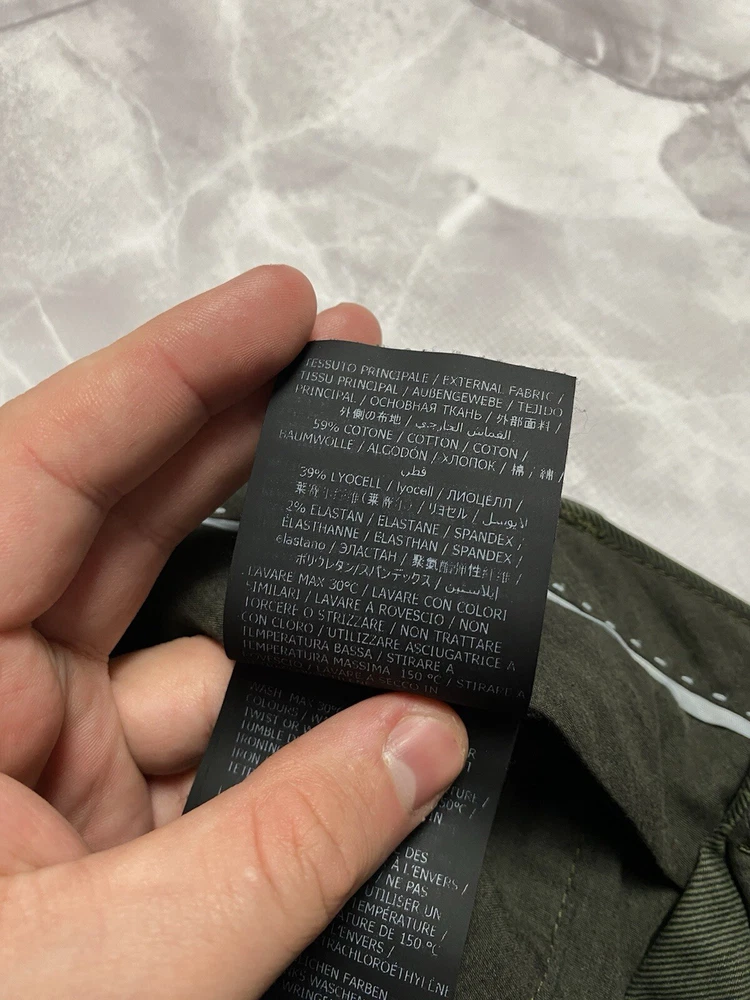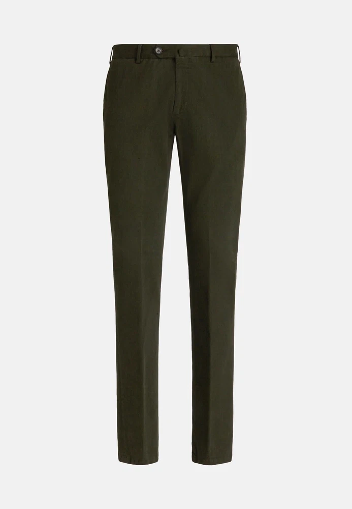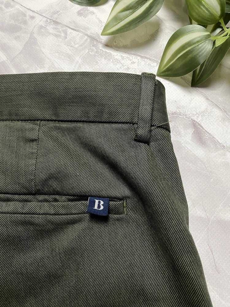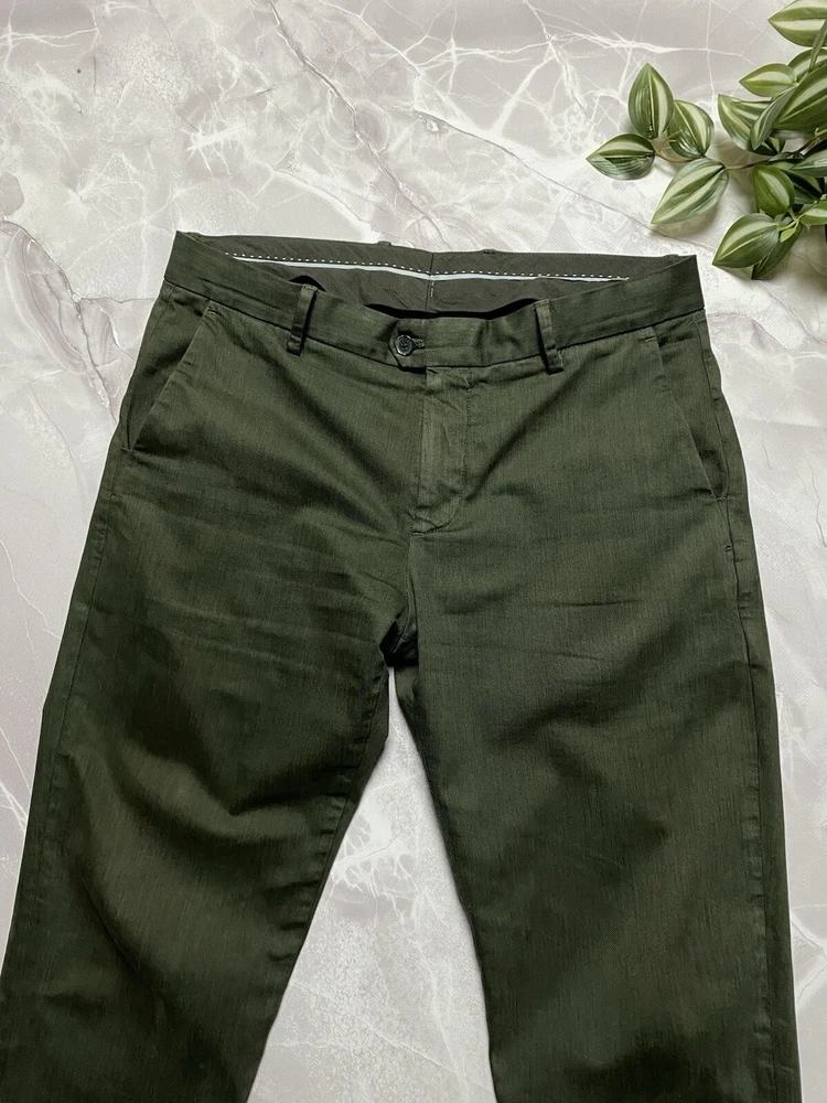 Garment-dyed stretch cotton and Lyocell Tencel trousers Tencel Lyocell is a high-quality, high-performance fabric of natural origin: it is gentle on the skin, breathable and lightweight Its flowing texture makes it easy to maintain, allowing for quick drying Patch with a branded logo on the back pocket CONDITION very good SIZE 48 MEASUREMENTS: Half waist - 45 cm Front rise - 30 cm Width at the hips - 56 cm Length - 99 cm Inseam length - 75 cm Leg opening - 18 cm