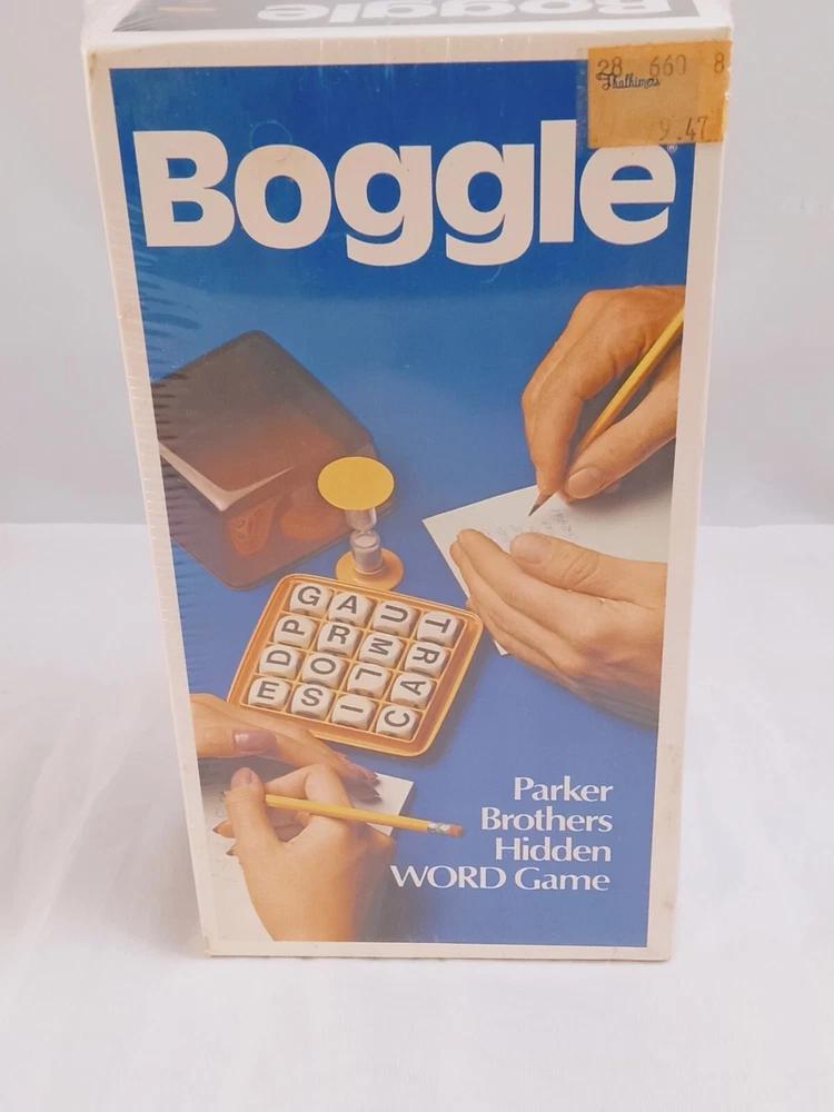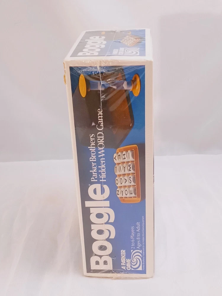 The product is a vintage 1980 version of the Boggle Hidden Word Game by Hasbro. It is a word game where players search for words in a grid of letters. This new edition is a collectible item for fans of classic board games.