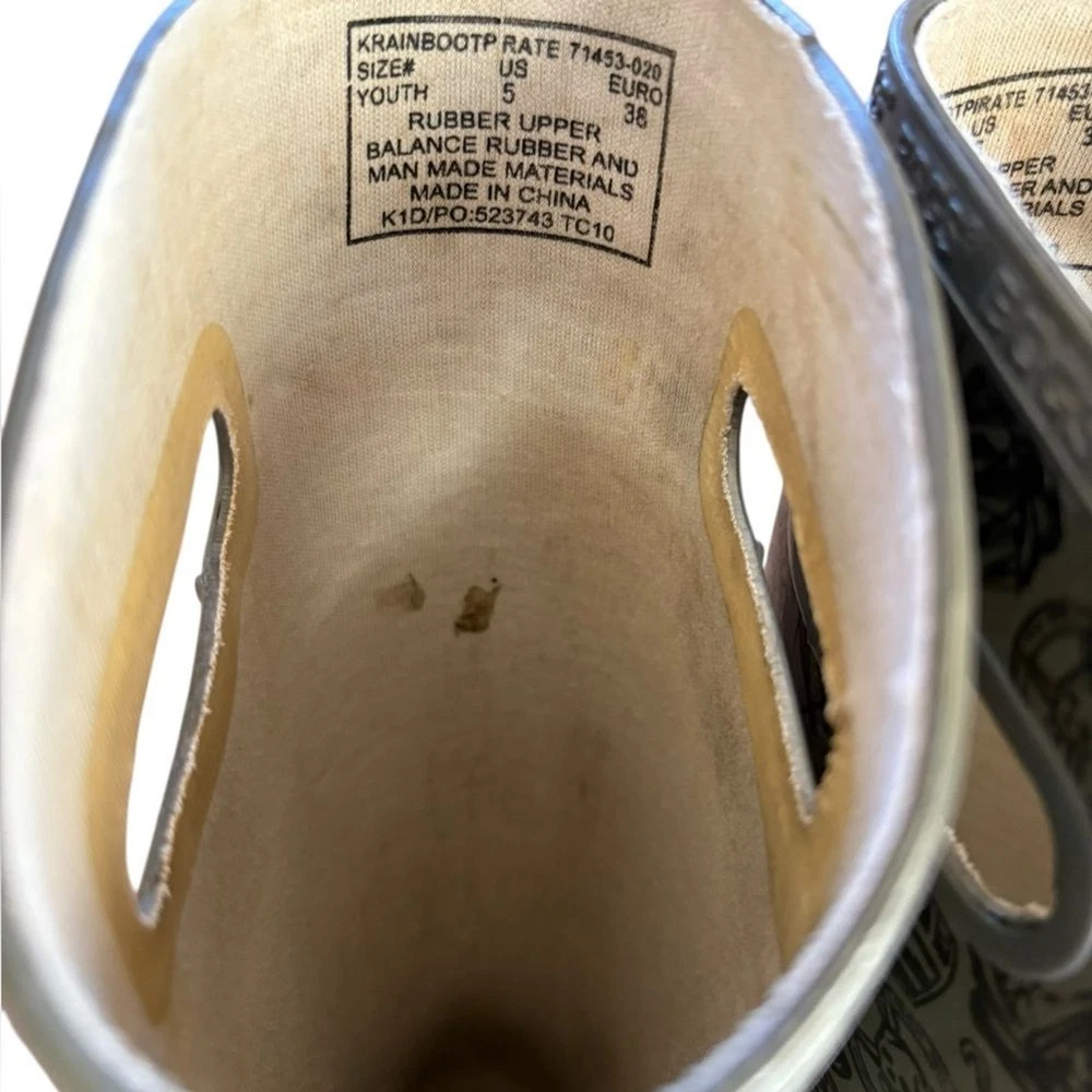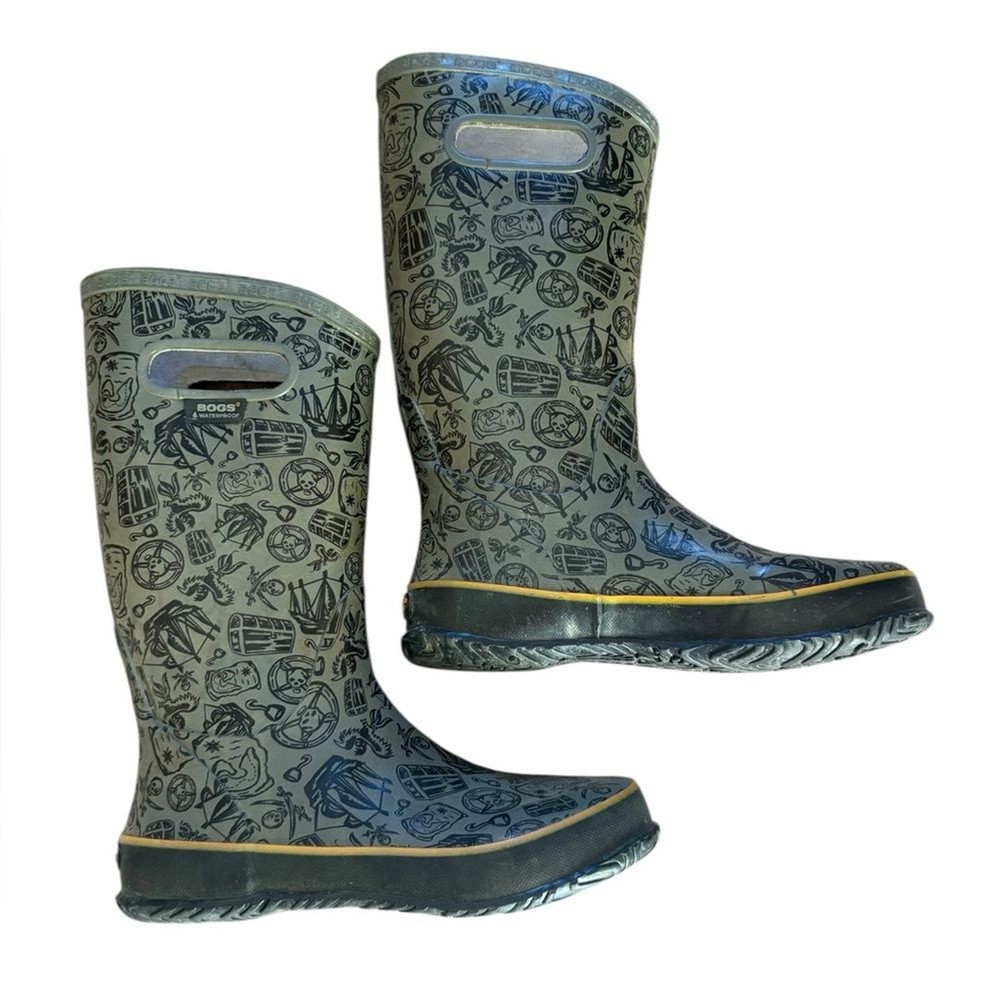 Bogs Rain Boots Pirate Print Youth Size 5 Great used condition! Tread is in really good shape. Please see photos for condition specifics.