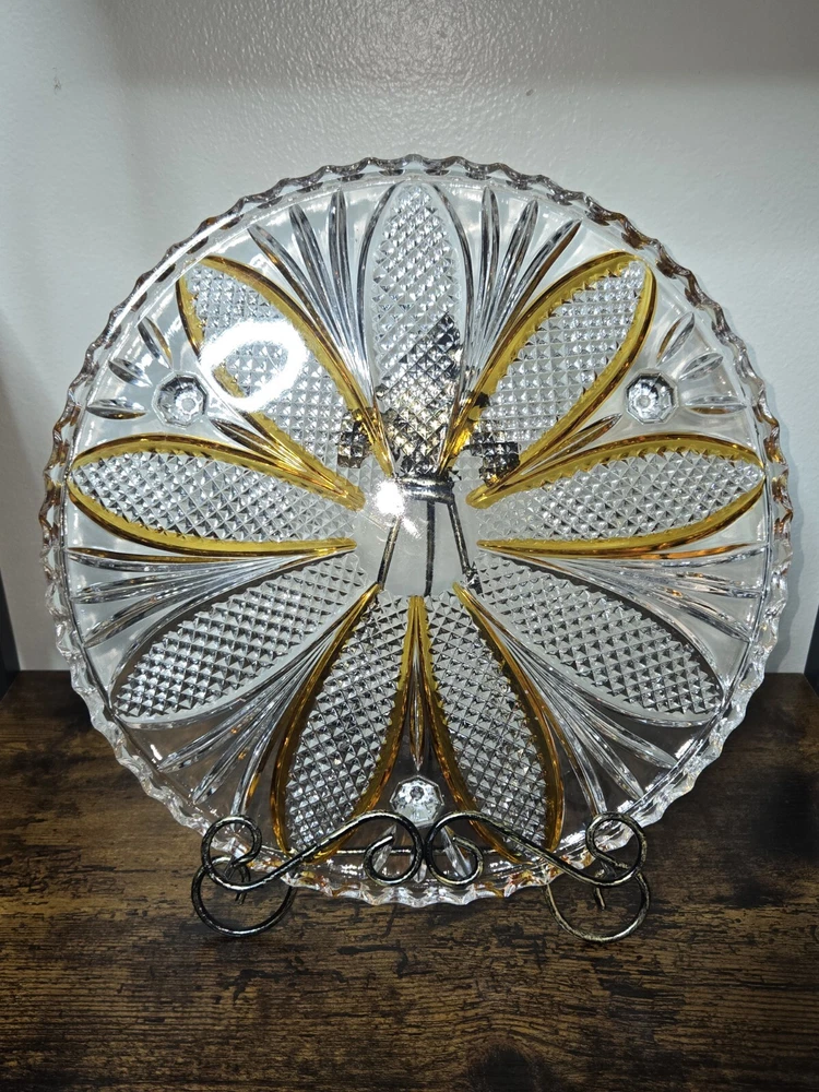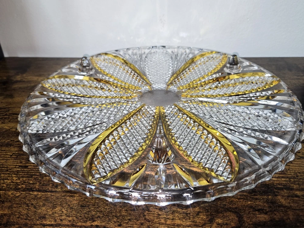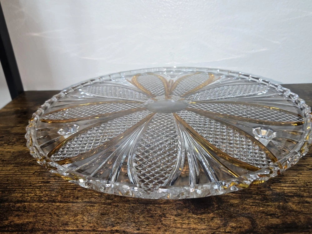 Vintage: Yes Country/Region of Manufacture: Czechia Brand: Unmarked Color: Orange Pattern: Vintage Type: Cake Plate Material: Crystal