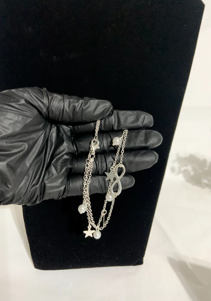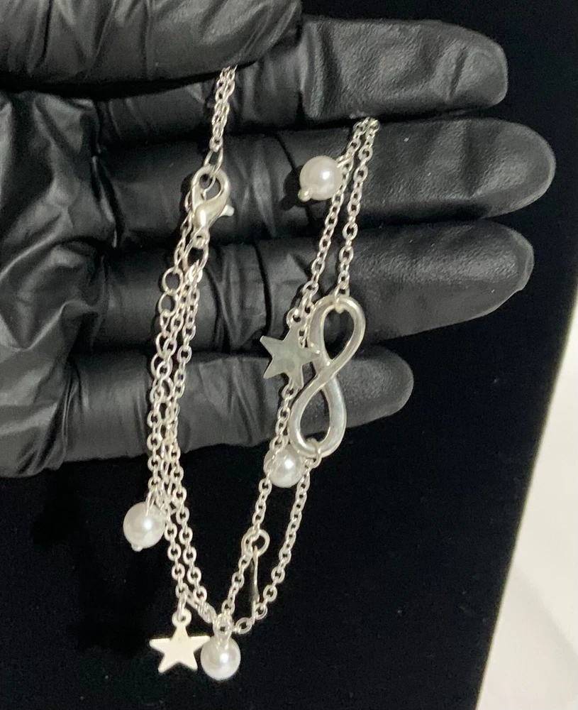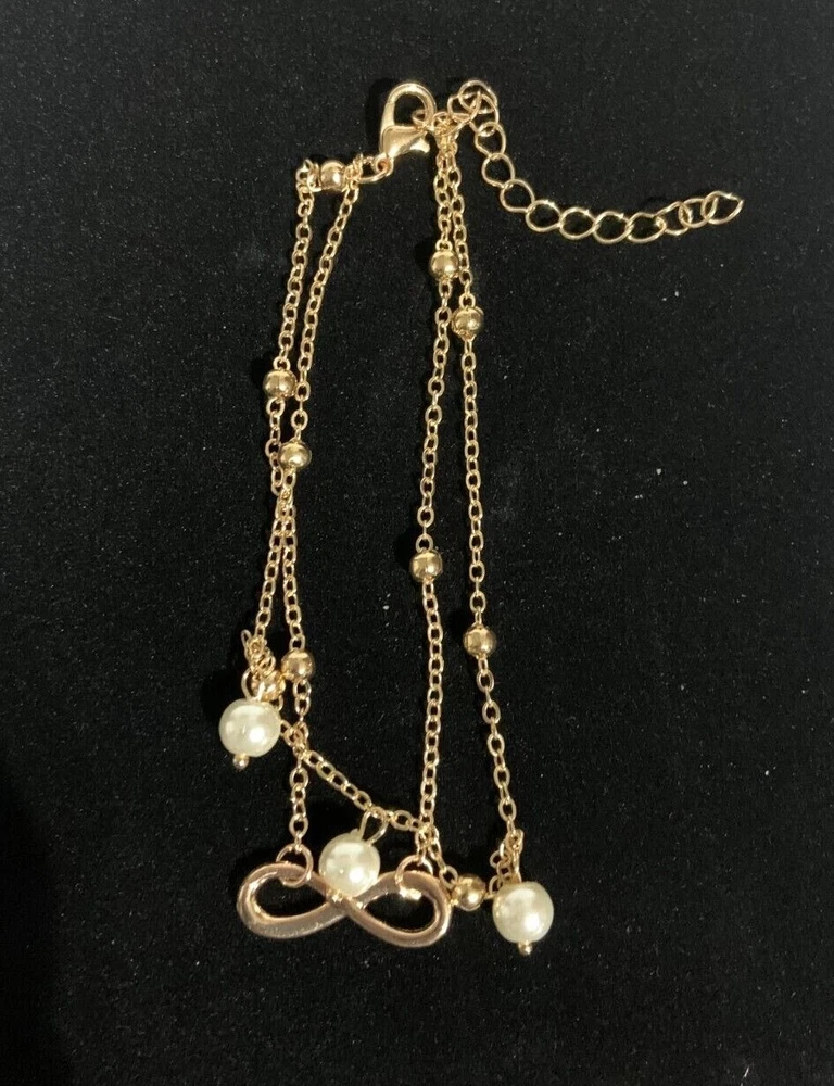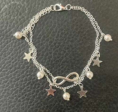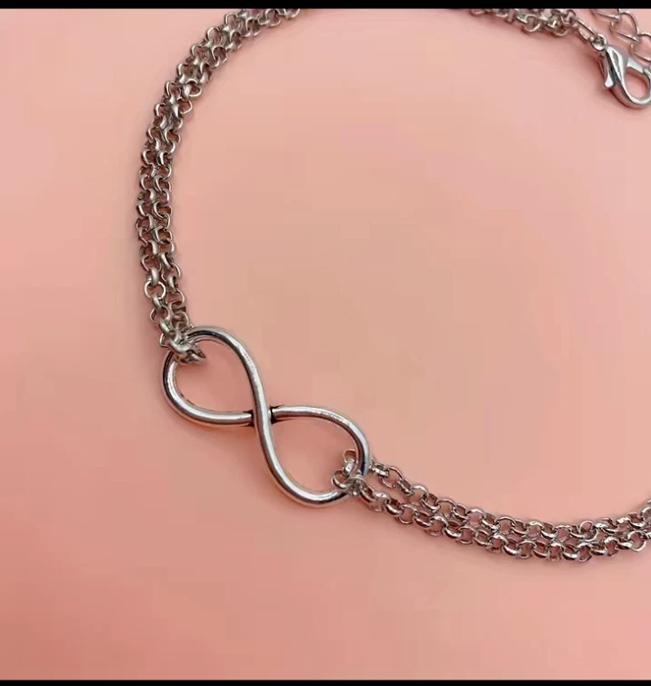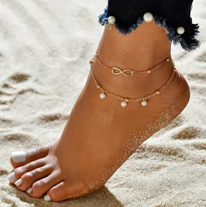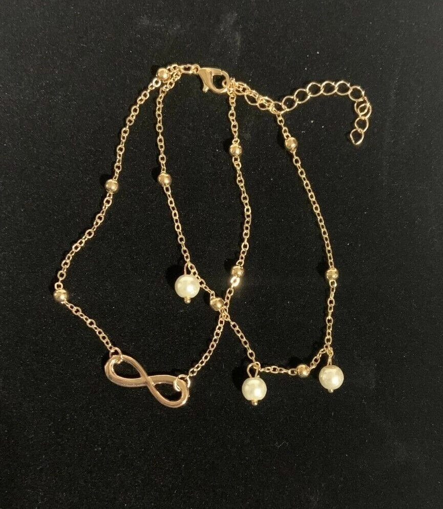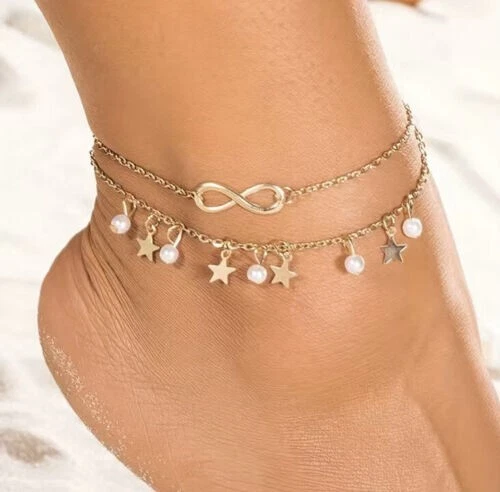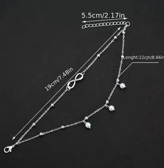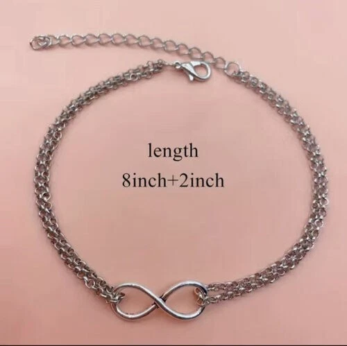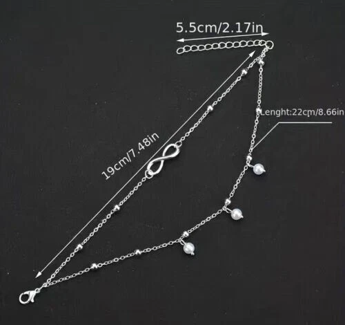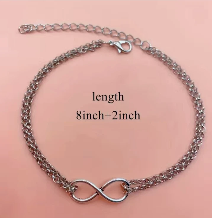Double layer design with 8-shaped/infinity, pendant/anklet/foot chain for a trendy and stylish look Dangling anklet adds a playful touch to your overall look Choose gold or silver color Occasions: Summer Beach, Party, Daily Life Package Includes: 1pc Anklet Bracelet