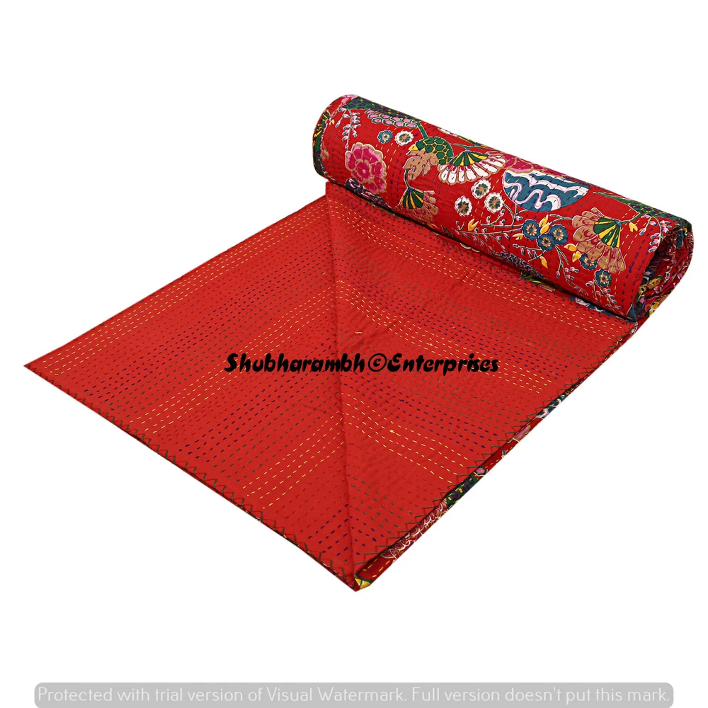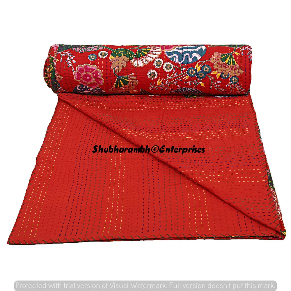 Product Details : Item - 1 PC Indian Cotton Kantha Quilt Fabric - 100% Cotton Fabric. Dimension - 90'' x 108" Inch (228 x 274 Cm) Colour - As Show in image Wash Care - Machine Washable . Product Description: Indian Cotton fabric Hand Kantha Quilted Queen Size Quilt, Blanket / Bedspread These Hippie Kantha quilt is made by two layer cotton fabric. These Kantha quilt is made by most of valuable hand art to give a unique Kantha pattern. Front side always Screen printed with kantha Work and back side always solid pattern. Payment policy: We accept the payment by pay pal. International buyers are responsible for their countries duties and taxes. Shipping Policy: We ship The Item Worldwide By FEDEX , UPS and by BOMBINO services. Feedback: Our aim is 100% buyer satisfaction. If you are pleased to our service so give a positive feedback.