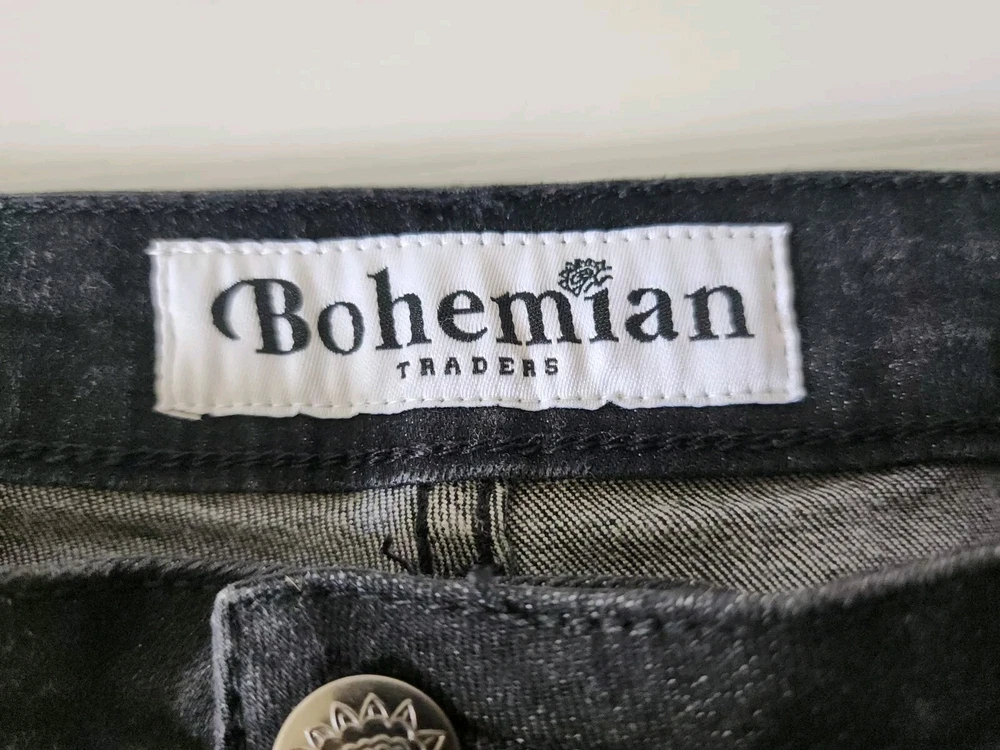 Bohemian Traders Black Embellished Jeans Boho Hippie Gypsie Harem Pants Size 40. Measurements: Waist 51cm Rise 34cm Inside Leg 70cm. Please use photos for additional information and a guide as to how to rate them… Colour may vary from photo to photo… Please keep in mind that you are purchasing an item that is second-hand. Most items will show some sign of cosmetic wear throughout the item/garment. Sizes may vary so please read measurements. We do our best to show an accurate representation of the condition in the photos. Sent with Australia Post Standard Parcel in a small/medium or large satchel parcel type bag with a tracking number. All items are packaged and wrapped with extreme care, we use bubble wrapping and cardboard where necessary, and satchels and boxes to deliver clothing and other items. All garments are wrapped in tissue paper. We will recycle as much as we can in regards to packaging. I'm happy to combine purchases when applicable… Express postage upgrade $3