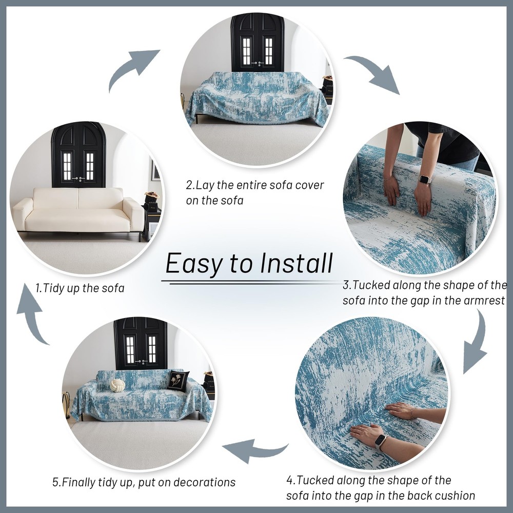 Boho Couch Cover for Dogs Washable Blue Abstract Couch Sofa Protector Dogs Pets Friendly Chenille Geometric Sofa Covers Soft Durable Farmhouse Sofa Slipcovers, 71" X102" High Quality: Couch throw cover furniture protector is made of thick chenille fabric, super soft and skin-friendly to the touch, tear-resistant, good drape, breathable, comfortable and durable. Suitable for all seasons and will not pilling or fading after washing. Product Size: We offer a variety of sizes for you to choose from,Medium Size (71"x102") for loveseat sofa futon chair,Large Size (71"x118") for 2-3 seats,X-Large Size (71"x134") for 3 seats, choose the right size according to the actual sofa size. Note: We provide pre-purchase guide, please measure the sofa size carefully! Unique Design: Sofa cover with fashionable and abstract geometric patterns, visually produce a sense of dynamics, make the boring room more charming,Furniture protector cover-light luxury and simplicity, can be used bed towel, couch cover, chair, sofa throw blank. Full Protect: Chenille couch cover which is easy to lay and take (Just cover it up on your sofa, tuck any extra fabric in the gap between the backrest or armrest and the seat to let the sofa cover closely integrate with your furniture and seat part to stay in place better) Care Instructions:Machine washable in cold water. Wash separately at gentle cycle. mild laundry detergent. Do not bleach and iron. (Note: slight color differences between production lots ). We stand behind all of our high quality products so we offer a 30 days No Question Asked on all our couch covers. Please (through if past the standard return window) and we will be pleased to assist you.