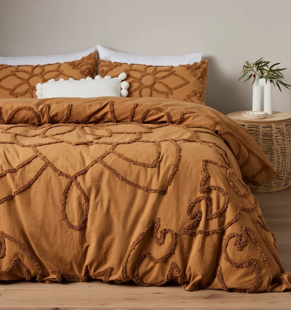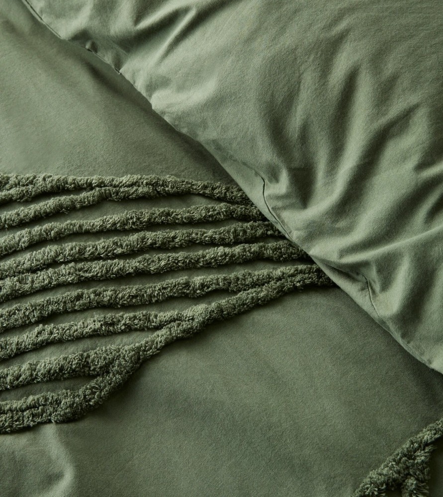 Adorn your bed with the Boho Dark Green Tufted Cotton Duvet Cover Set, featuring a tasteful leaf design that brings a touch of nature to your bedroom. This five-piece set, meticulously crafted in India, embodies a luxurious boho style that is sure to add texture and comfort to your space. Constructed with 100% cotton and boasting a thread count between 201 and 400, this duvet cover set promises breathability and softness. It caters to a variety of ages and tastes, fitting perfectly in any bedroom decor. The set includes a rectangular duvet cover with a convenient zip closure, and it's easy to maintain with machine wash and tumble dry instructions. ITEM DESCRIPTION : Item 3 Piece Set - 1 PC Duvet Cover With 2 PC Pillow Covers. Material - 100% Soft Cotton Fabric Feature - Tufted Design Color - ivory and white , Beige, Grey, Pastel Yellow , Sage Green. Closure - Back Side Zip Closure Wash Care - Dry Clean SIZE CHART : Twin - 68" x 90" inches & Pillow Size is 20" x 30" inches Twin XL - 59" x 102" Inches & Pillow Size is 20" x 26" Inches Full - 80" x 90” Inches & Pillow Size is 20" x26” Inches . Queen - 90" x 90” Inches & Pillow Size is 20" x 30” Inches . King - 90" x104” Inches & Pillow Size is 20" x 36” Inches. Cl.king - 98" x104” Inches & Pillow Size is 20" x 36” Inches. Cushion Cover Size - 18X18" inches in Standard Size. We ship order order by FedEx, & Dhl Express, hence rest assured for prompt delivery of your order. NOTE : International buyers are responsible for their countries duties and taxes.