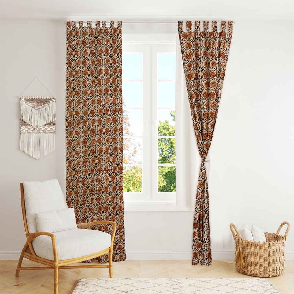 $ 32.0Bohemian Indian Floral Block Print Cotton Window Curtains (Set of 2)