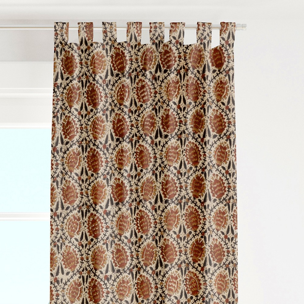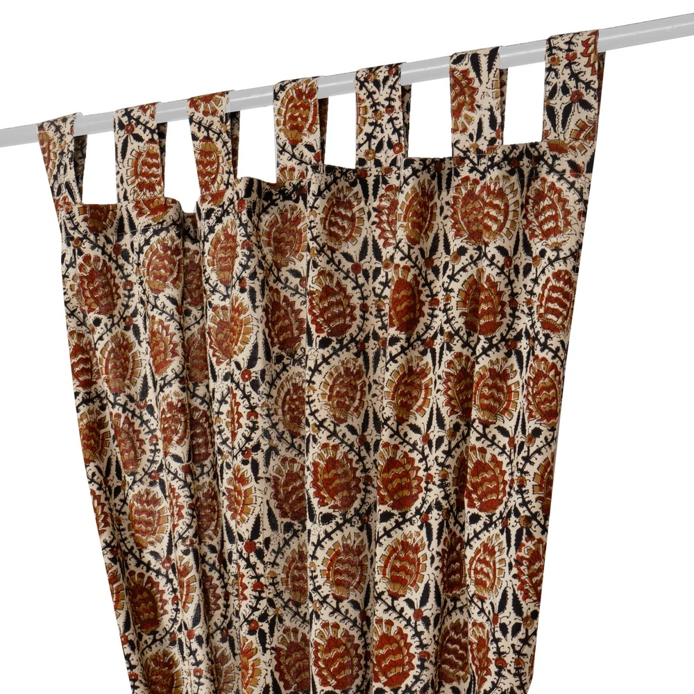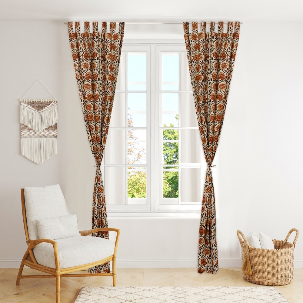 Ethnic Indian Floral Block Print Cotton Curtains Window Drapes