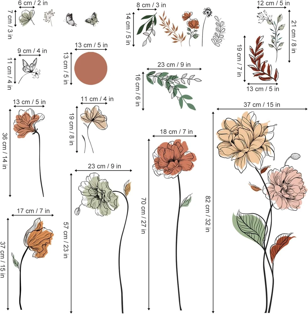 It can be stuck onto any clean, dry, non-textured smooth surfaces: walls, windows, tiles, furniture, mirrors, even your refrigerators. decalmile wall stickers are made of high quality, bright and colourful, easy to peel and stick, removable and waterproof. decalmile boho flower wall decals are perfect to decorate girls bedroom, living room, dining room, office. Come in 2 sheets, sheet size: 30cm × 90cm (11.8" × 35.4"), or depending on your preference to DIY. If you're not satisfied with your purchase or have any problems on installation, please feel free to contact us and we will reply and help solve problems within 24 hours. Product Description DECALMILE BOHO WALL DECALS Add Chill Vibes Various Choices with Unique Design decalmile stock a huge selection of stunning wall stickers catering to all ages and tastes. We promise all stickers are non-toxic and top quality PVC material Wall Decals for Kids Become an interior decorator and transform your living space from ordinary to extraordinary with decalmile unique wall stickers. Flower Wall Decor Add to Cart Add to Cart Add to Cart Add to Cart Add to Cart Add to Cart Add to Cart Customer Reviews 4.7 out of 5 stars 138 4.5 out of 5 stars 257 4.4 out of 5 stars 78 4.8 out of 5 stars 15 4.5 out of 5 stars 40 4.4 out of 5 stars 78 4.5 out of 5 stars 213 Price $11.99 $ 11 . 99 $12.99 $ 12 . 99 $11.99 $ 11 . 99 $16.99 $ 16 . 99 $12.99 $ 12 . 99 $17.99 $ 17 . 99 $11.99 $ 11 . 99 Removable ✔ ✔ ✔ ✔ ✔ ✔ ✔ Material PVC PVC PVC PVC PVC PVC PVC Installation Type Peel & Stick Peel & Stick Peel & Stick Peel & Stick Peel & Stick Peel & Stick Peel & Stick Theme Flower Flower Flower Flower Flower Flower Leaves Color Multi Multi Multi Multi Multi Multi Multi Pink Wall Decor Add to Cart Add to Cart Add to Cart Add to Cart Add to Cart Add to Cart Add to Cart Customer Reviews 4.4 out of 5 stars 102 4.4 out of 5 stars 78 4.4 out of 5 stars 78 4.3 out of 5 stars 739 4.5 out of 5 stars 40 4.5 out of 5 stars 125 4.5 out of 5 stars 308 Price $18.99 $ 18 . 99 $12.99 $ 12 . 99 $11.99 $ 11 . 99 $16.99 $ 16 . 99 $11.99 $ 11 . 99 $10.99 $ 10 . 99 $18.99 $ 18 . 99 Removable ✔ ✔ ✔ ✔ ✔ ✔ ✔ Material PVC PVC PVC PVC PVC PVC PVC Installation Type Peel & Stick Peel & Stick Peel & Stick Peel & Stick Peel & Stick Peel & Stick Peel & Stick Color Multi Multi Multi Multi Multi Multi Multi Theme Palm Tree Palm Leaves Palm Leaves Palm Leaves Vine Leaves Tree What types of surfaces can the wall decals be applied to? Our wall stickers can be applied to just about any clean and smooth surface that is free of dust, grease, or other contaminants. DecalMile wall stickers may not adhere to heavily-textured surfaces but can adhere to lightly textured wall. How long will my wall sticker stay up? DecalMIile wall stickers are not intended for permanent application. However, they can last for months or years depending on the surface and environment. Will the wall decals damage my wall? When walls have been prepared as recommended and proper application, most people have no wall damage issue while removing. Please be aware that there is potential for wall damage. Freshly painted walls should be allowed to cure for at least 4 weeks. I installed a wall decal but it is starting to peel off. What do I do? If part of a wall sticker starts to come off a surface, you can use washable glue, such as a glue stick or wallpaper paste or glue, to reattach it.