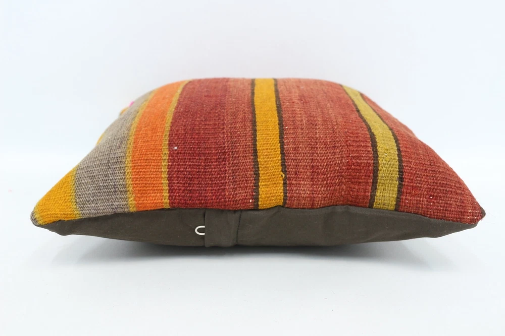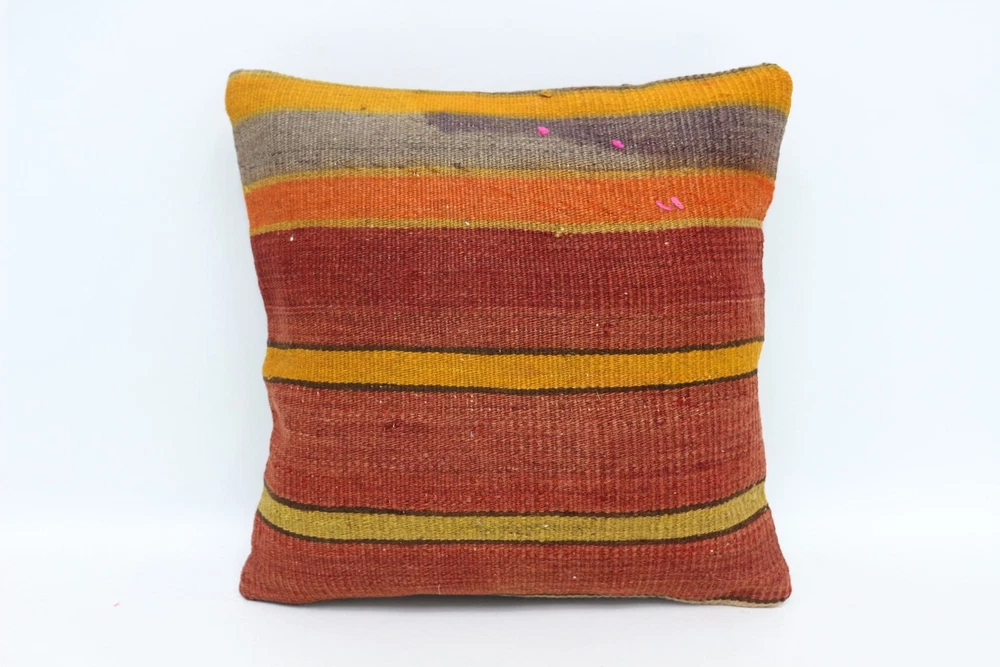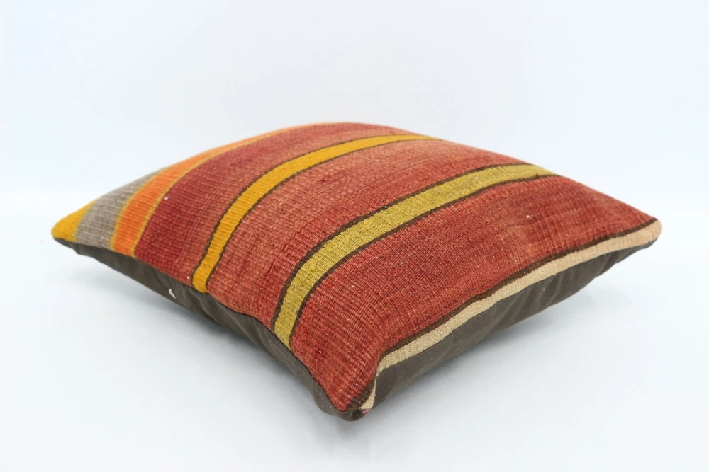 Kilim Pillow Details: All of my beautiful pillow covers or cushion cases are designed and made by me. I am making my throw pillow covers from handmade vintage rugs, Turkish rugs. Therefore, each of my vintage kilim pillowcase is one of kind. These cushions covers are piece of an art. The size of this pillow is 12 x 12 inches or 30 x 30 cm. The front side of this decorative pillow cover, cushion cover is wool on wool vintage kilim rug. The backside of this throw is high quality cotton fabric with a high quality zipper. This listing has 2 option for this handmade pillow. You can choose with insert or without insert. The listing photos is with insert in the pillowcase which is just for demonstration purpose. All of my vintage Turkish rugs have been professionally washed before I cut them as pillow case or cushion case so these kilim covers are 100 posent clean and ready to use. Due to the age and handmade nature of these vintage rugs, there might be imperfections and flaws that are not considered defects. This is a piece of a handmade vintage rug with minor signs of wear consistent with age and use that give it an antique look. You can see the condition of the rug pillow clearly in the detailed photos. I am going to ship your order of decorative pillow as soon as possible. I usually ship in the next day with DHL Express or FedEx which will deliver the kilim pillow, cushion cover just in 3-5 business days. It is my responsible until you receive pillow cover or pillow cover with insert at your door. If the pillow cover or insert get lost or damage during the shipping, I will ship the new kilim pillow cover or pillow insert for free as soon as possible. I take photos of my throw pillows indoor with professional camera which shows the real colors. The photos of these Turkish pillow covers are not altered. Keep in mind the colors of the rug vary slightly in different lights. Please contact to me for additional photos. I take the photos of my vintage rugs outside with daylight to show you the real and natural colors. My photos are not altered. Keep in mind the colors of the rug vary slightly in different lights. Please contact to me for additional photos. SATISFACTION GUARANTEED for your order in my shop. Your SATISFACTION is the most important to me. Please write me if you have any question or if you don't like anything from my pillow covers, cushion covers. If any reason, you are not happy from your Turkish pillow cover, I accept return without any hassle. Please read my shop policies for details. This cushion case or pillow cover can be used as decorative throw pillow, gift pillow, Christmas pillow case, bedding pillow, lumbar pillow, sofa pillow, bohemian pillow, boho pillow. You can find in any kind of Turkish kilim pillow cover in different design such as striped pillow, embroidered pillow, and geometric pillow.