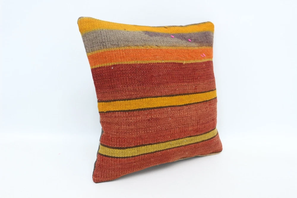 Boho Pillow Sham Cover, Handmade Kilim Cushion, Pillow, 12"x12" Red Pillow