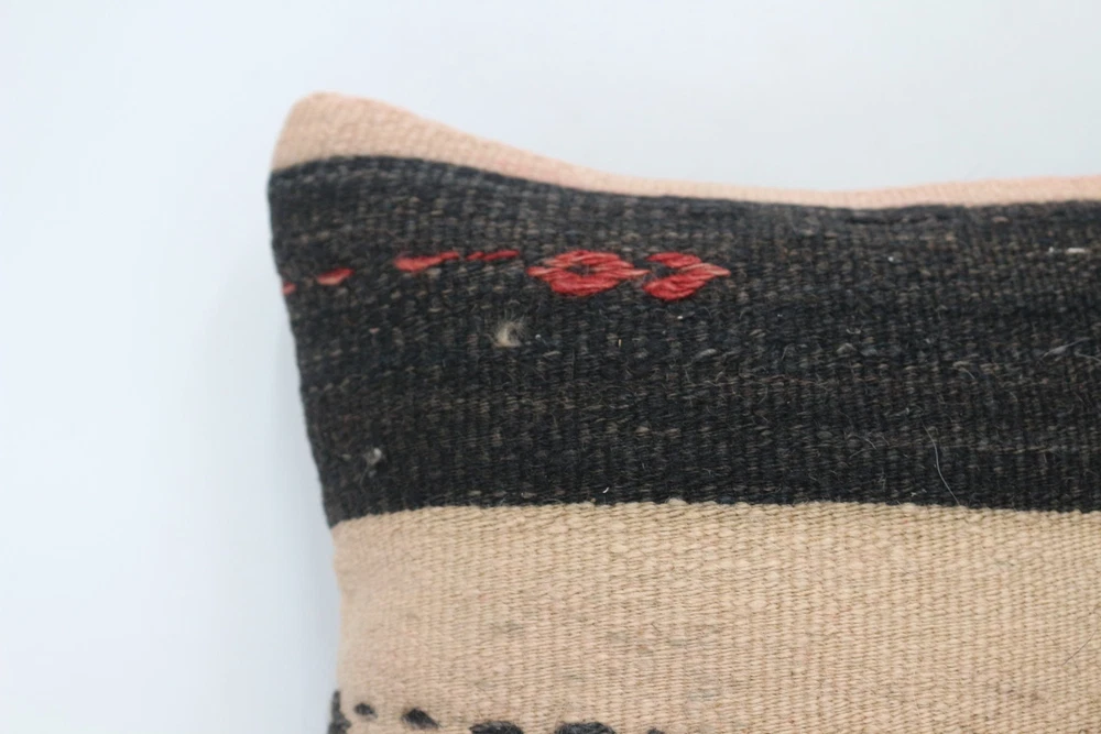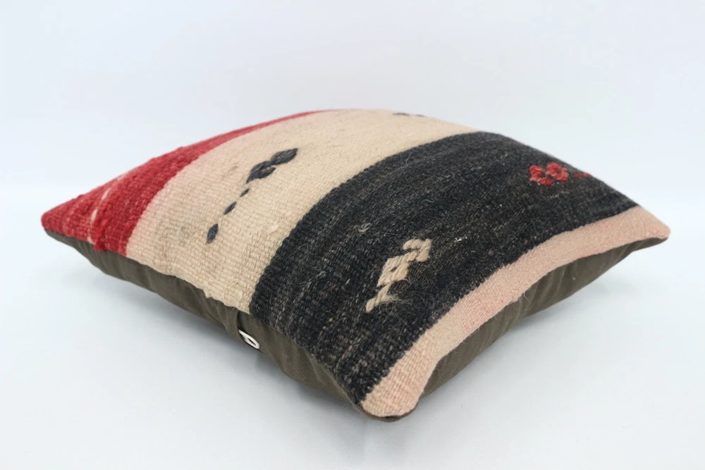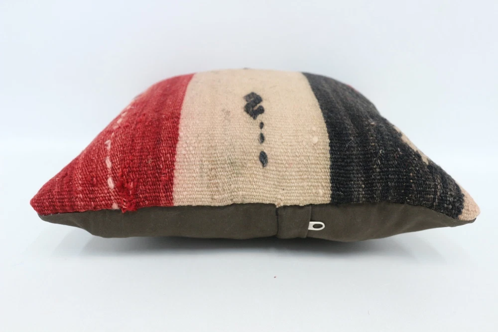 Kilim Pillow Details: All of my beautiful pillow covers or cushion cases are designed and made by me. I am making my throw pillow covers from handmade vintage rugs, Turkish rugs. Therefore, each of my vintage kilim pillowcase is one of kind. These cushions covers are piece of an art. The size of this pillow is 12 x 12 inches or 30 x 30 cm. The front side of this decorative pillow cover, cushion cover is wool on wool vintage kilim rug. The backside of this throw is high quality cotton fabric with a high quality zipper. This listing has 2 option for this handmade pillow. You can choose with insert or without insert. The listing photos is with insert in the pillowcase which is just for demonstration purpose. All of my vintage Turkish rugs have been professionally washed before I cut them as pillow case or cushion case so these kilim covers are 100 posent clean and ready to use. Due to the age and handmade nature of these vintage rugs, there might be imperfections and flaws that are not considered defects. This is a piece of a handmade vintage rug with minor signs of wear consistent with age and use that give it an antique look. You can see the condition of the rug pillow clearly in the detailed photos. I am going to ship your order of decorative pillow as soon as possible. I usually ship in the next day with DHL Express or FedEx which will deliver the kilim pillow, cushion cover just in 3-5 business days. It is my responsible until you receive pillow cover or pillow cover with insert at your door. If the pillow cover or insert get lost or damage during the shipping, I will ship the new kilim pillow cover or pillow insert for free as soon as possible. I take photos of my throw pillows indoor with professional camera which shows the real colors. The photos of these Turkish pillow covers are not altered. Keep in mind the colors of the rug vary slightly in different lights. Please contact to me for additional photos. I take the photos of my vintage rugs outside with daylight to show you the real and natural colors. My photos are not altered. Keep in mind the colors of the rug vary slightly in different lights. Please contact to me for additional photos. SATISFACTION GUARANTEED for your order in my shop. Your SATISFACTION is the most important to me. Please write me if you have any question or if you don't like anything from my pillow covers, cushion covers. If any reason, you are not happy from your Turkish pillow cover, I accept return without any hassle. Please read my shop policies for details. This cushion case or pillow cover can be used as decorative throw pillow, gift pillow, Christmas pillow case, bedding pillow, lumbar pillow, sofa pillow, bohemian pillow, boho pillow. You can find in any kind of Turkish kilim pillow cover in different design such as striped pillow, embroidered pillow, and geometric pillow.