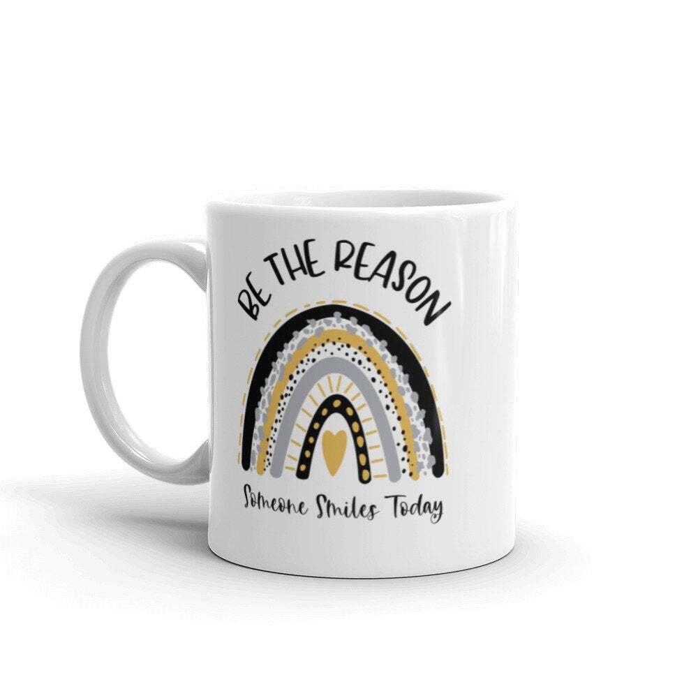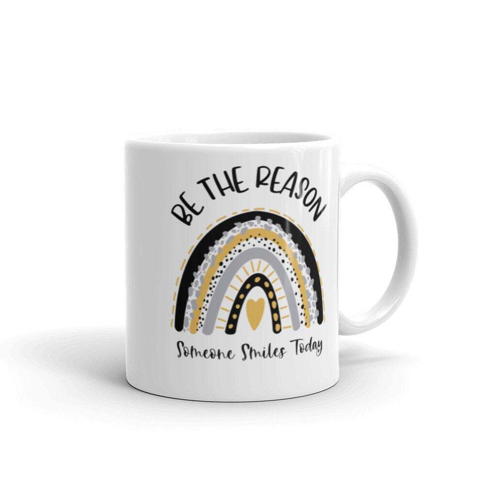 Rainbow Mug Be The Reason Mug Boho Rainbow Mug Inspirational Mug Motivational Product Details.. This high quality 11oz. ceramic white mug has a premium hard coat that provides crisp and vibrant color reproduction sure to last for years. Perfect for all hot & cold beverages. The highest quality printing possible is used. It will never fade no matter how many times you wash it. Material: 100% Ceramic. Print both sides. Dishwasher and Microwave Safe. High Gloss + Premium White Finish. Printed in the U.S.A. Personalized & Custom. We support personalized and custom mug to add custom, when placing an order, you can add notes to the "order note" in shipping address section. Also you can contact us directly via message. Shipping Info. Ready to ship in 1 to 2 business days, All products are made-to-order and proudly printed in the United States. Shipped by USPS and DHL, You will receive your order in 5-7 days. Replace & Refund. All products are defective during shipping broken, chipped will be replaced free of charge. You are not satisfied with the product, we will refund 100% money to you. If any other issues arise, please do not hesitate to message, we would be more than happy to assist you.